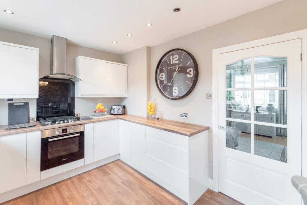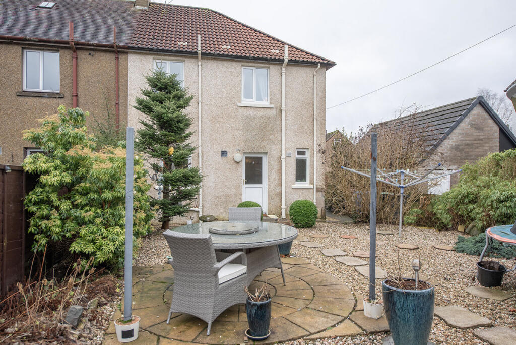 This 3-bedroom semi-detached house in Dollar, Clackmannanshire, is presented in good condition. The property boasts a recently modernised kitchen and bathroom, both showing a contemporary design with good quality fixtures and fittings. The interior photographs highlight a tasteful and well-maintained home, suggesting a comfortable and practical living space. The house has a rear garden. While the exact dimensions are not provided, it appears to be a manageable size ideal for outdoor living.