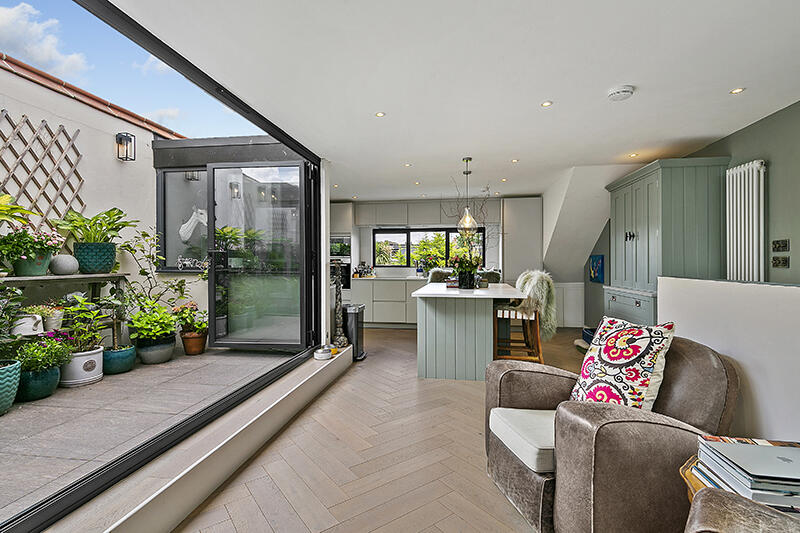 A quite exceptional split level apartment located in this lovely residential street close to Richmond Bridge. This home is finished to a very high standard throughout with stylish design cues, and a far from bland interior.