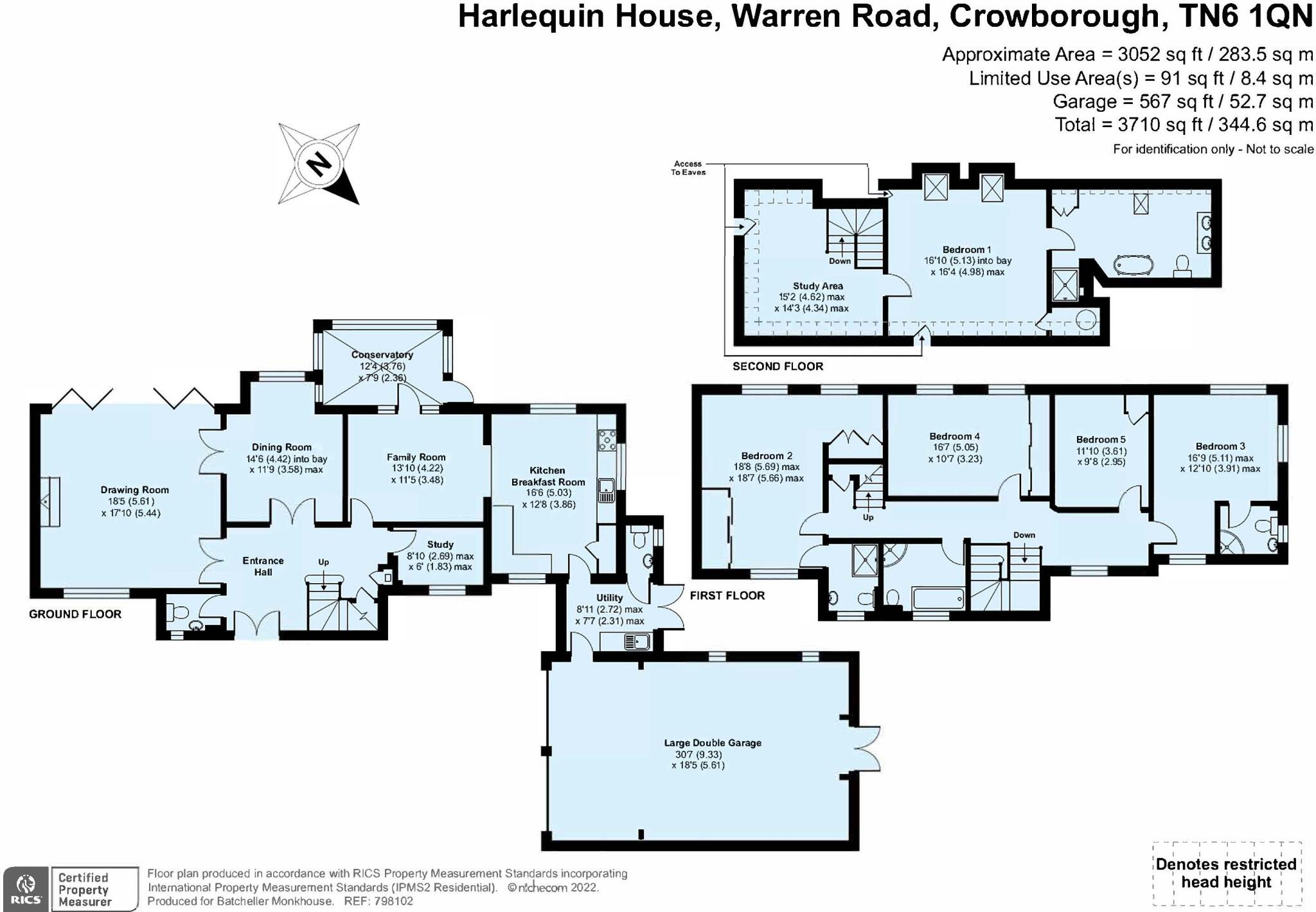 A stunning and luxurious five bedroom detached house, enjoying a quiet location in the sought after “Warren Area”. Manageable half an acre mature gardens, spacious in and out gated driveway, extensive garaging and distant views. Near to Ashdown Forest, High Street and major supermarkets.