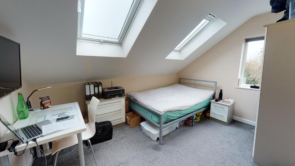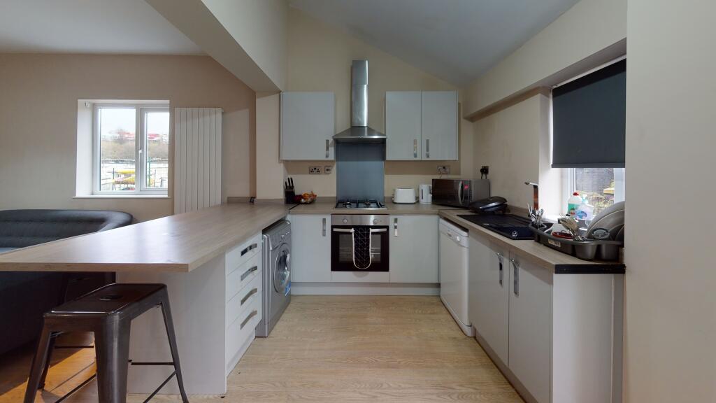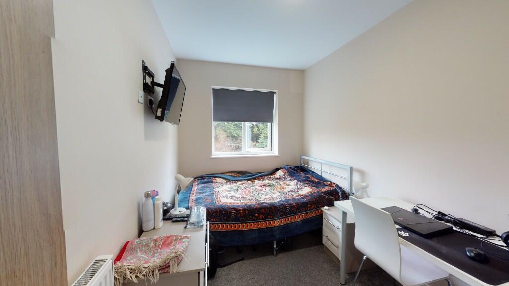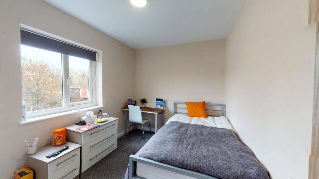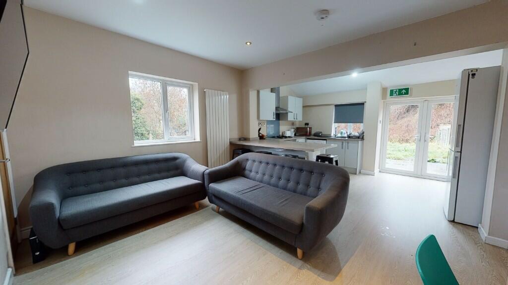 This stylish 6 bed, 3 bath student home with large bedrooms all with smart TVs and a great shared living space and large outdoor area. Located just around the corner from the entrance of the university, this home is perfect for a group of students who want to be close to the university
