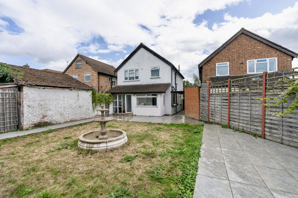 Galaxy Real Estate presents this detached family home on Fordbridge Road, Ashford, TW15. Featuring 3 bedrooms, reception room, sitting/dining area, kitchen, utility, bathroom, WC, garage, driveway for 2 cars, and rear garden with fountain. Ideal for families and investors.
