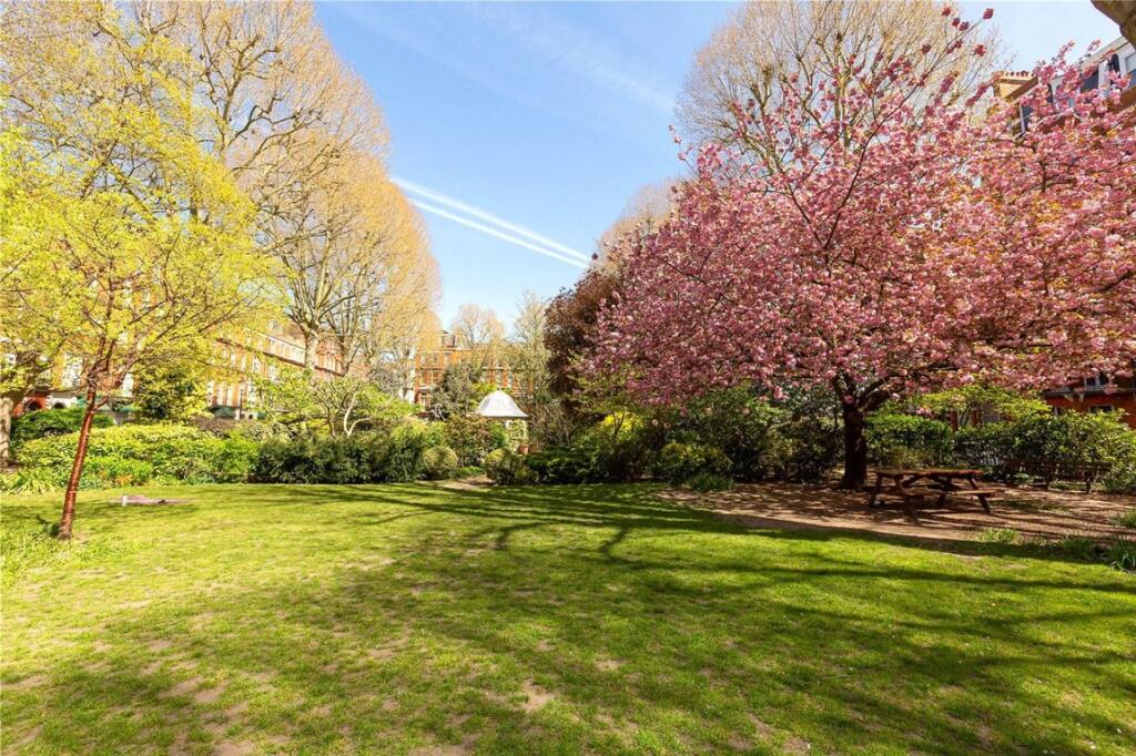 A rare to the market beautifully presented and proportioned raised ground floor two bedroom two bathroom property on a private garden square within a handsome Victorian conversion. The west-facing reception room looking onto the communal gardens retains many of the original features including the...