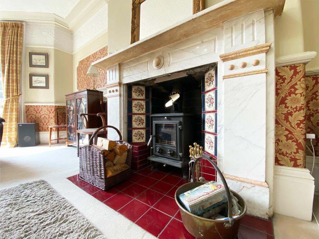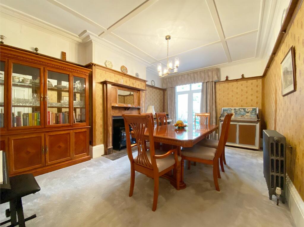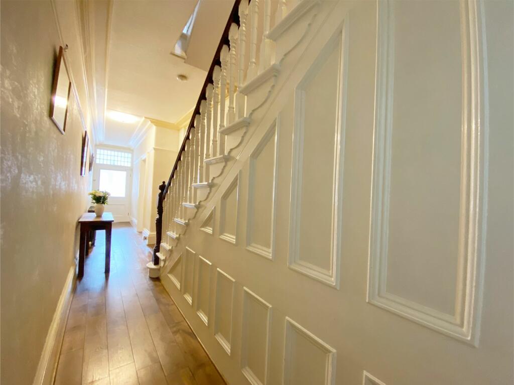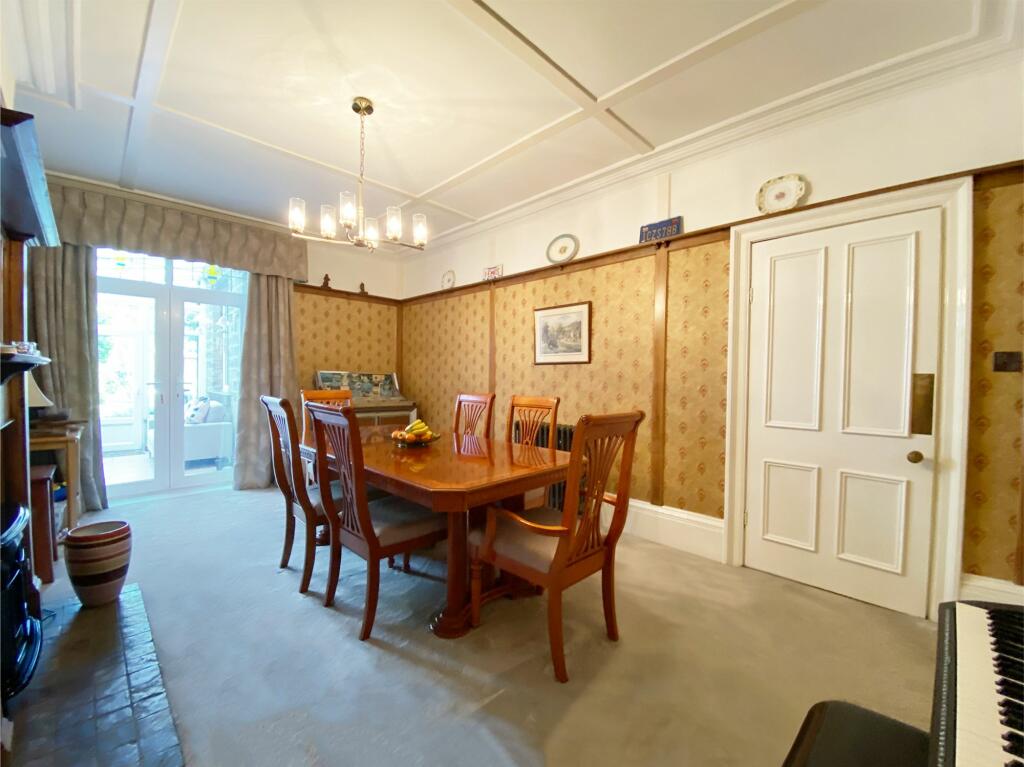 The house itself appears to be a period property, exhibiting traditional features such as high ceilings, ornate fireplaces, and original woodwork. The images suggest the property has been well-maintained and is in good condition, with a recently modernised kitchen. There is also a conservatory and a garden, which is a desirable feature in this market.