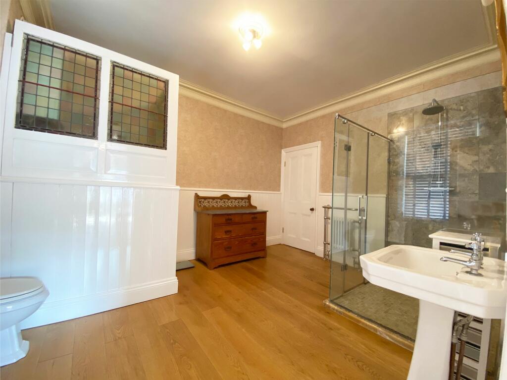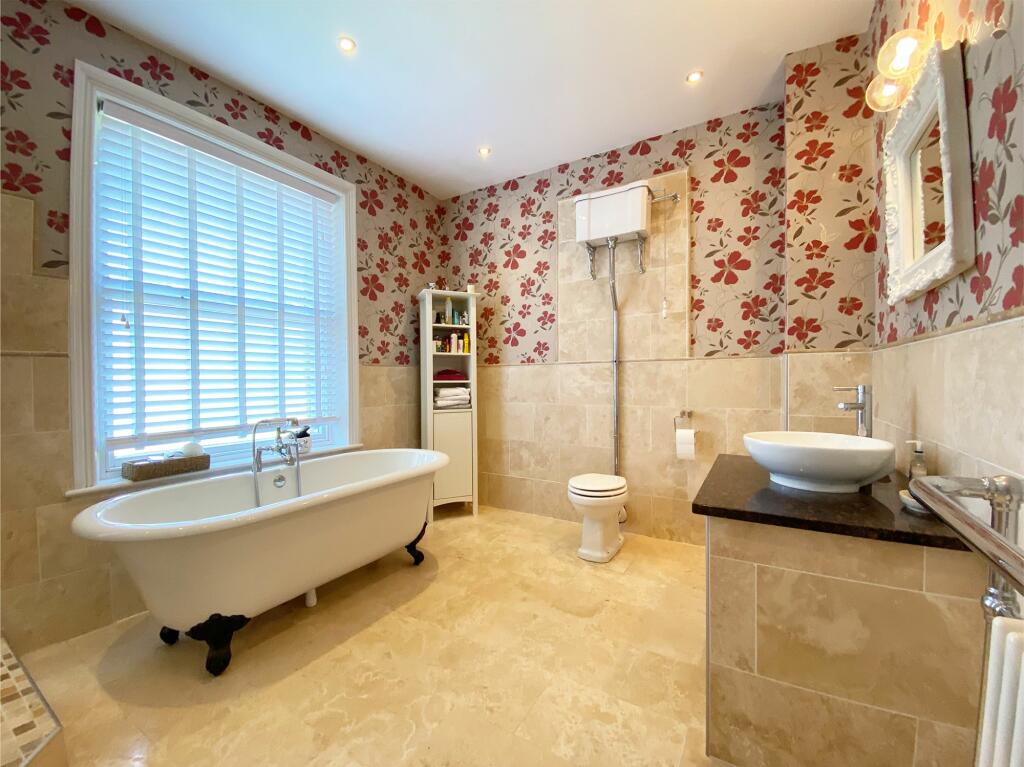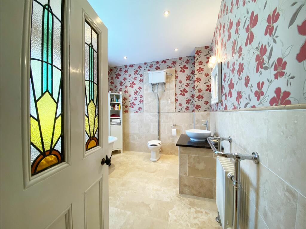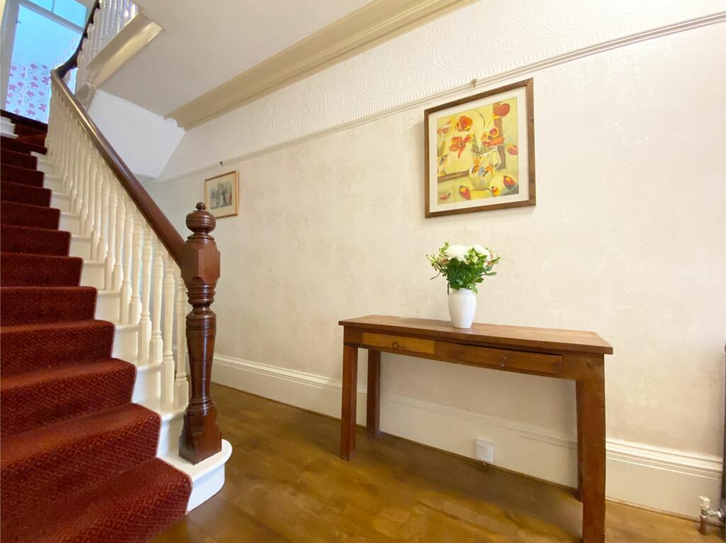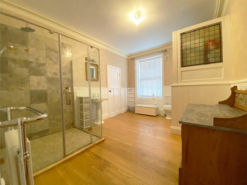 The house itself appears to be a period property, exhibiting traditional features such as high ceilings, ornate fireplaces, and original woodwork. The images suggest the property has been well-maintained and is in good condition, with a recently modernised kitchen. There is also a conservatory and a garden, which is a desirable feature in this market.