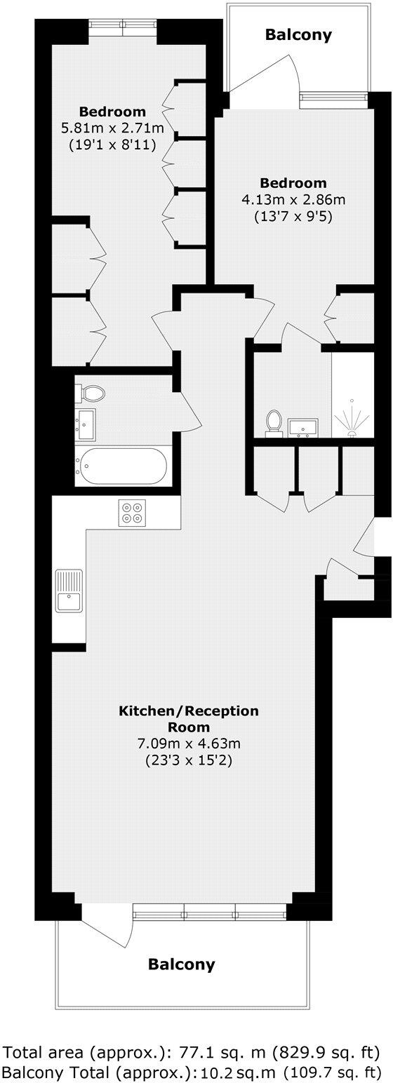 Large two bedroom of nearly 830 sq. feet offered to the market chain free and in great condition. Further benefits from two private balconies.