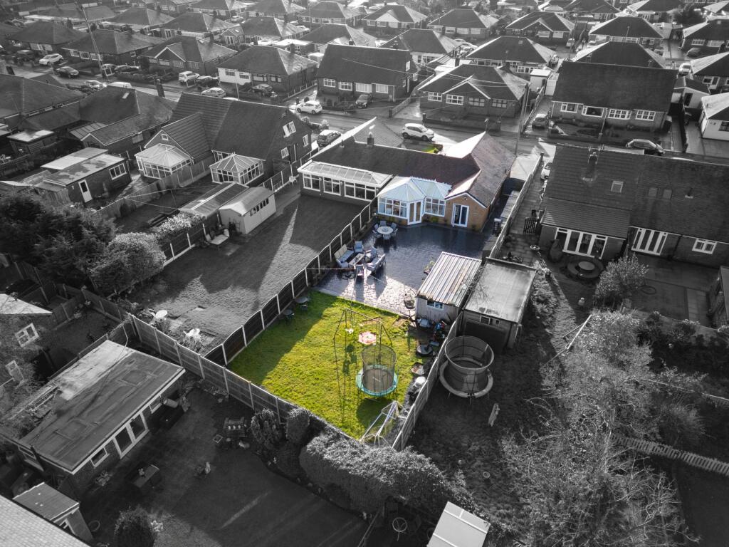 This semi-detached bungalow in Paddington, Warrington is listed at £300,000. The property boasts 3 bedrooms, 1 bathroom, and a substantial plot size, as evidenced by the aerial photographs showcasing a sizable garden with a patio, conservatory, and shed. The interior is presented in good condition, with modern fixtures and fittings throughout. The kitchen features modern white cabinets and black countertops, while the bathrooms are also recently updated. The property benefits from a convenient location, with nearby access to several primary schools rated as “Good” or “Outstanding” by Ofsted. Train stations are also within reasonable proximity, offering convenient commuting options. Compared to the average house price in the area (£436,619) and average price per square foot (£273), the asking price appears to be below average. However, it is important to note that the average house size in the area is significantly larger (1596 sqft vs 1054 sqft). The absence of sqft data for nearby listings makes a precise price comparison challenging, but the property seems competitively priced considering its size, condition, and features.