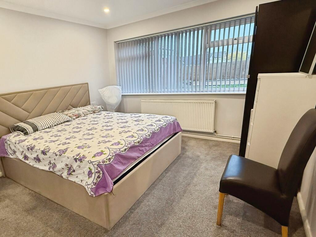 This is a detached bungalow located in Oadby Uplands. The property features a modern kitchen and bathroom, suggesting recent renovations. It includes a garden with a shed and a garage. The property is located near schools and transportation links. The garden could use some work. The price is slightly above the average for the area, but this may be justified by the property type and recent updates.