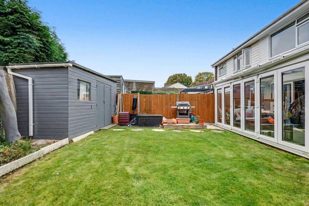 This is a three-bedroom semi-detached house in Rainham South, Gillingham. The property benefits from three bathrooms, a modern kitchen, and a good-sized garden with a patio. While some rooms would benefit from modernisation, the property is in reasonable condition overall. The property is located close to schools and transportation links. The asking price of £400,000 seems reasonable given the property’s size, location, and condition.