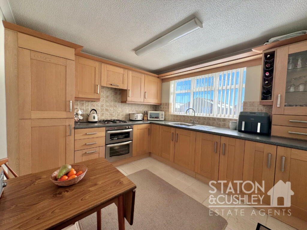 This three-bedroom detached bungalow in Abbott Lea, Mansfield, presents a comfortable family home. The property boasts a well-maintained interior featuring updated bathrooms and a generally clean and well-presented aesthetic. The kitchen appears functional, but may benefit from some modernization to match the overall impression of the property. The property appears to offer a good balance of living space and ample built in storage. A conservatory expands the living area and provides a sunny, additional sitting space. The inclusion of a relatively sizable garden is a significant advantage, especially in a family-friendly area.