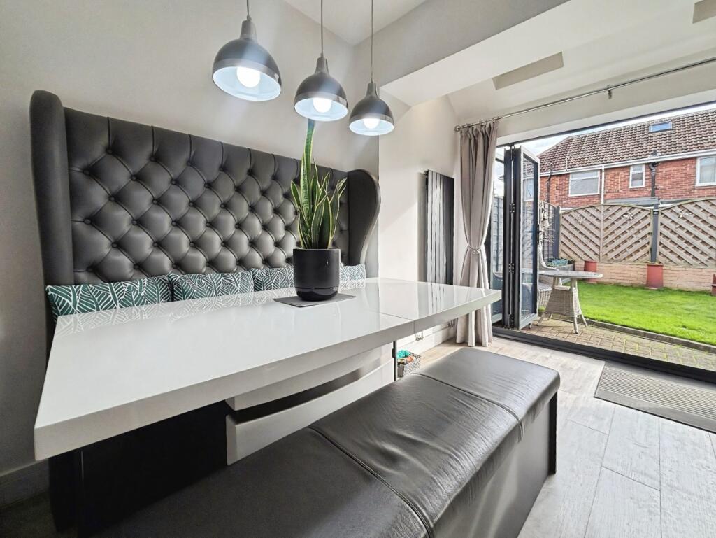This beautifully extended three-bedroom semi-detached home in Fenwick Avenue features a modern open-plan kitchen and dining area with bi-fold doors, a converted garage home office, spacious bedrooms including a master with dressing area and ensuite, a family bathroom, and a sunny south-west facing g