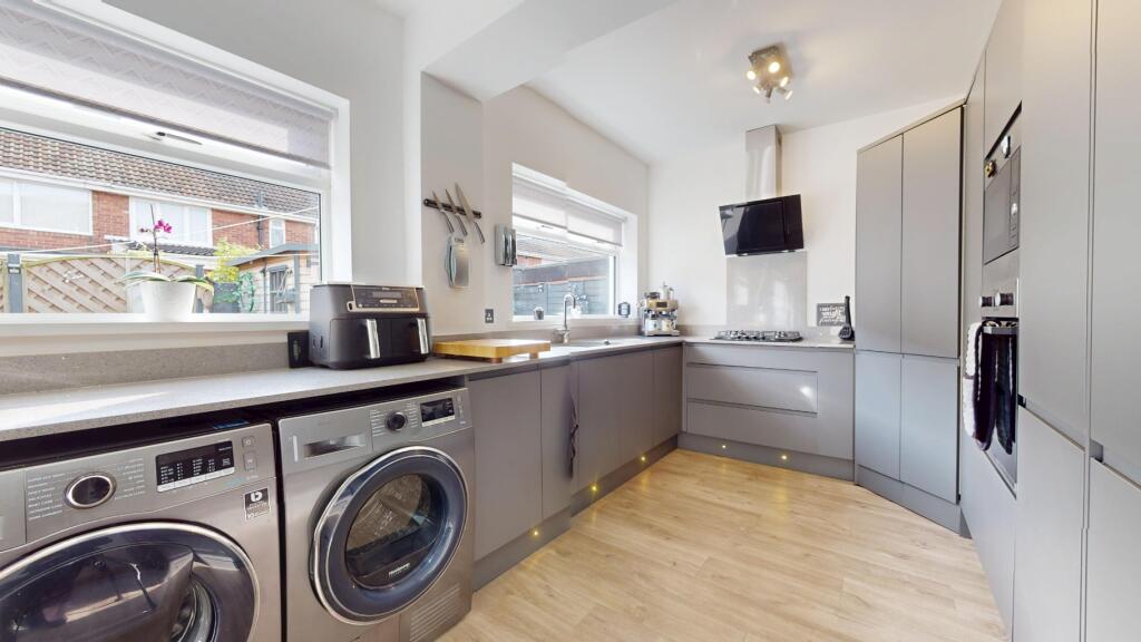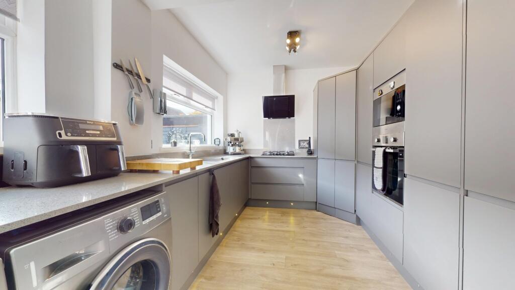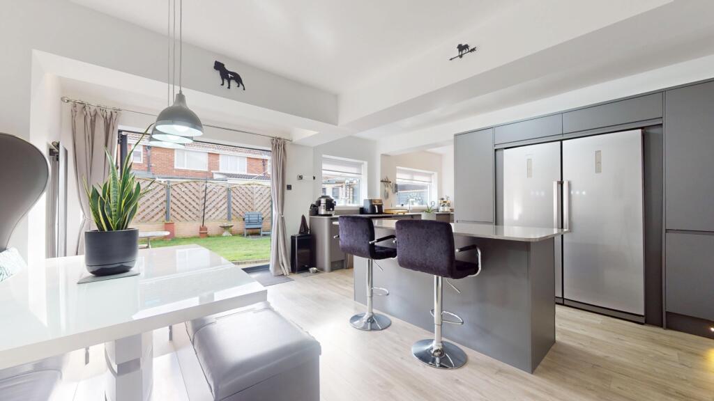 This is a three-bedroom semi-detached property located on Fenwick Avenue in South Shields. The house features a modern kitchen, a well-maintained garden with a shed, and two bathrooms. While the square footage is not provided, the property appears to be in good condition, although some areas, particularly the bathrooms, could benefit from updating. The property is located near several schools, making it attractive to families. The listing price of £280,000 seems slightly high compared to the average area price but is in line with similar properties in the vicinity. Browns Estate Agents are managing the listing.