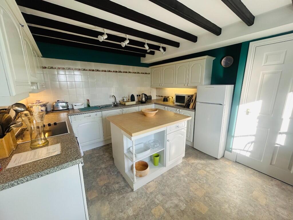 This property is a 3 bedroom, 2 bathroom apartment located in Leyburn, North Yorkshire. The apartment is situated in a stone built property, which appears well maintained from the exterior photos. The interior photos show a property that is well presented and benefits from exposed beams and a traditional feel. There is a kitchen with an island, and a good sized living area with a fireplace. There are three bedrooms, two of which are double rooms in the loft conversion. The property also benefits from access to a garage. The property is listed at £225,000 which is slightly higher than the average price for the area of £231,250. However, given the size of the property (1151.74 sqft) and the additional benefit of the garage, this price may be reasonable. The location is good, with schools within a reasonable distance.