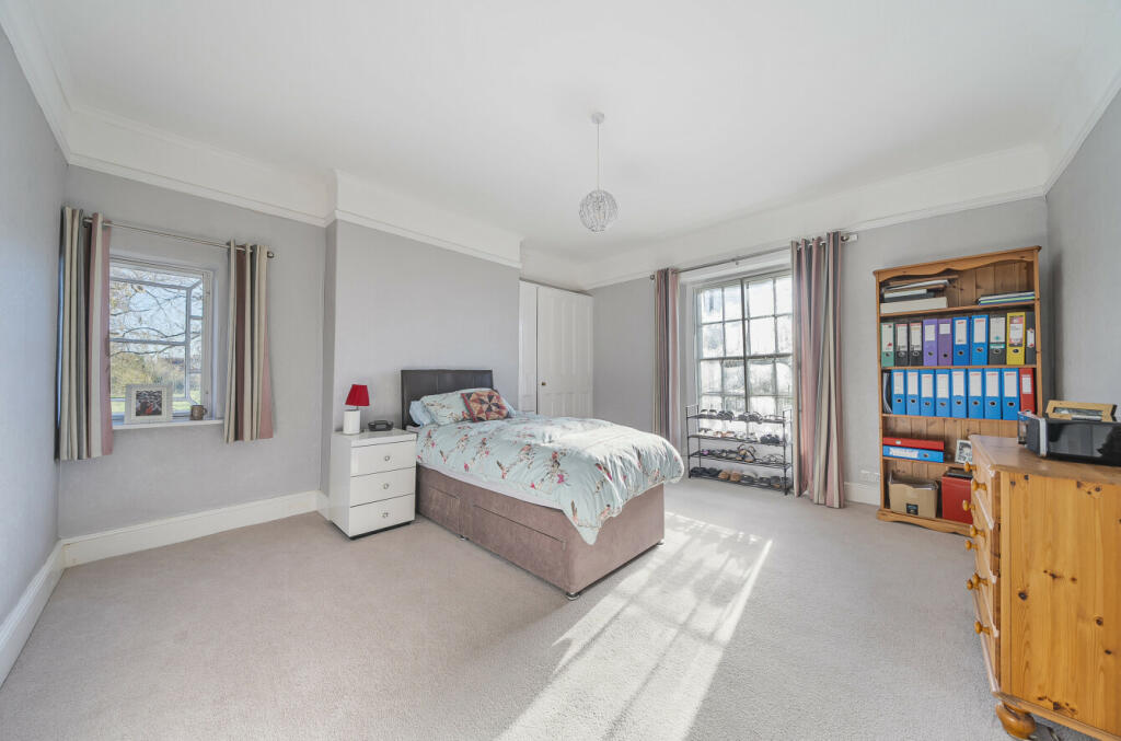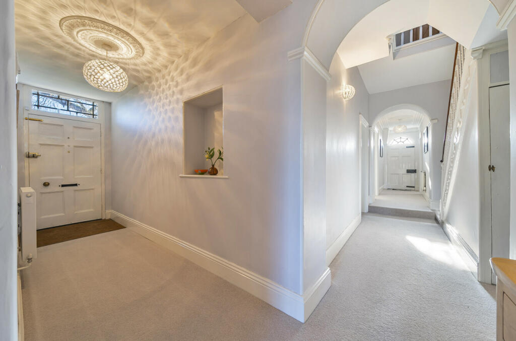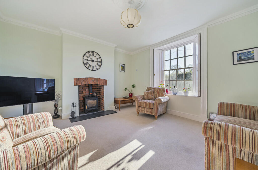 Elegant, period charm combines with modern comforts in this substantial, Grade II listed, five-bedroom Georgian style home on a two-acre plot with direct access to bridleway, and with outbuildings including stable, double garage and workshop.