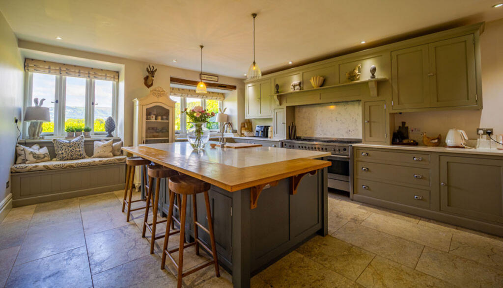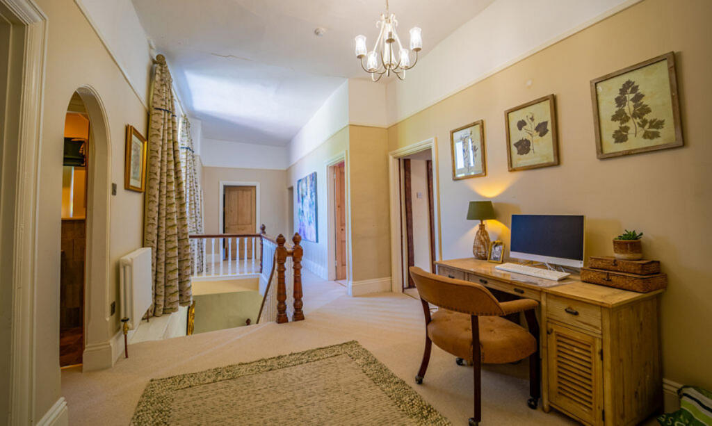 This is a substantial country house located in Penpergwm, Abergavenny. The property features six bedrooms and five bathrooms, offering ample space for a large family or those who enjoy hosting guests. The house retains many of its original features, adding to its charm and character. The property is set within a large plot, providing extensive gardens and privacy. While the house is in good condition, some areas may benefit from cosmetic updates. The location offers a balance of rural tranquility and accessibility to nearby towns and transportation links. The property includes parking and garage space.