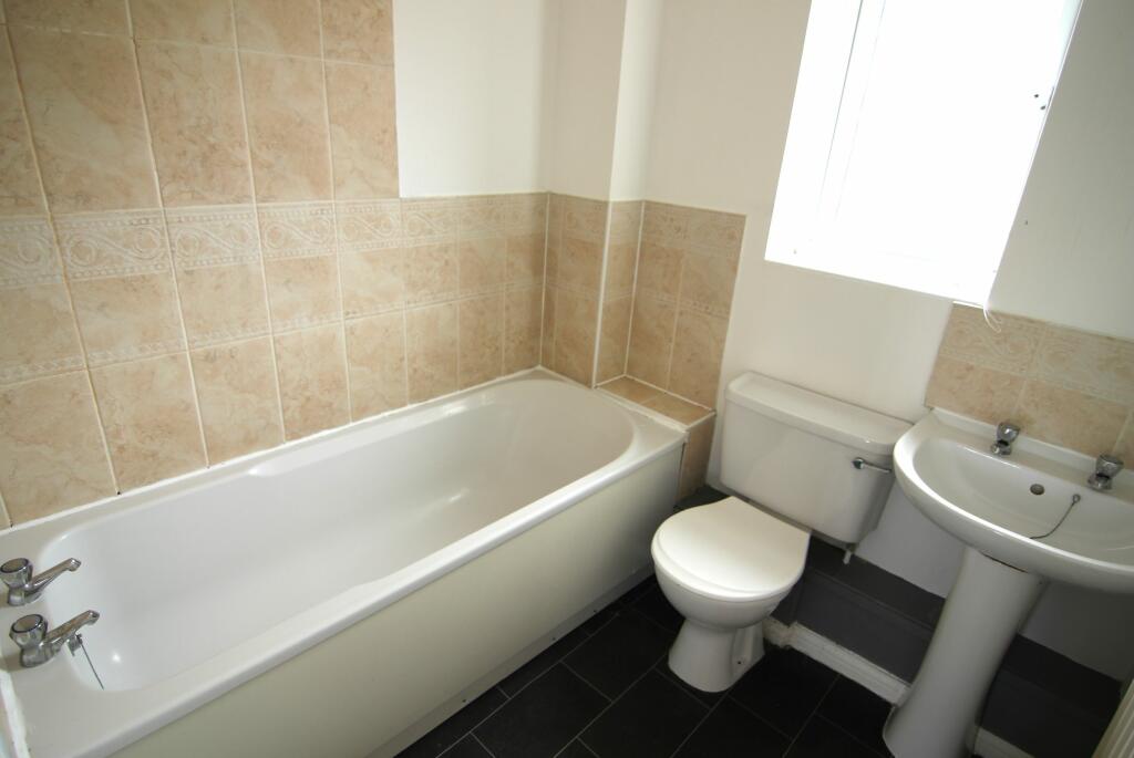 Three Bedroom terrace house with garden, garage and parking Bathroom with shower over bath, plus downstairs WC, modern Gas heating.
