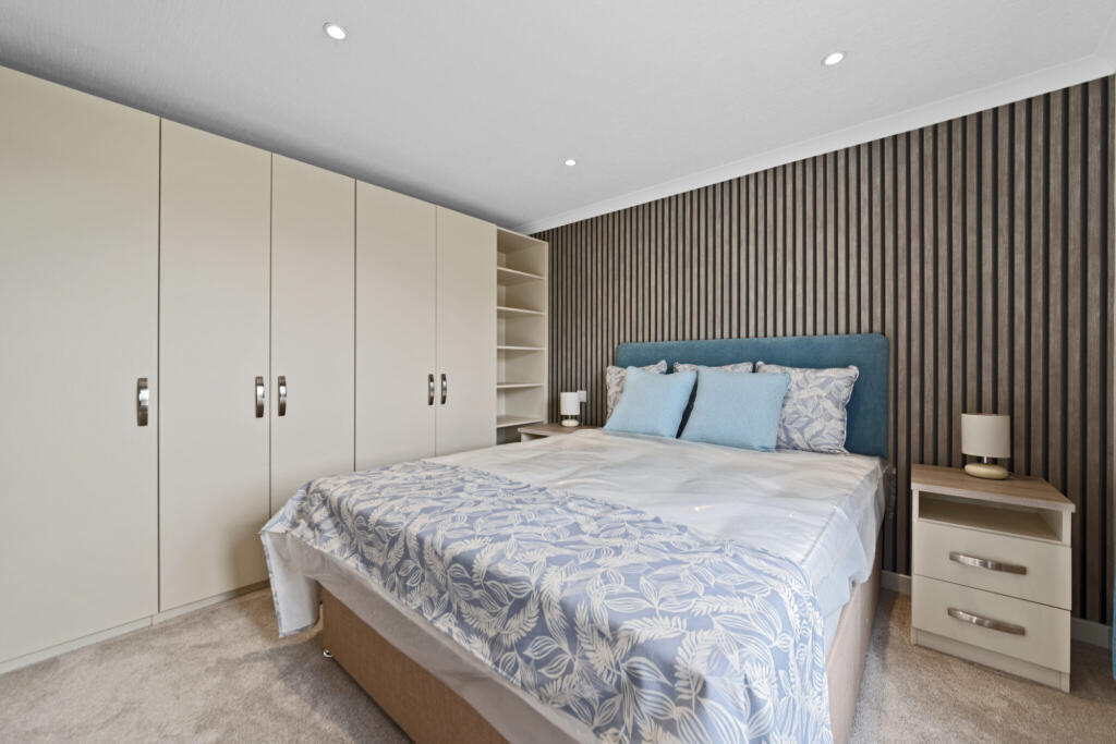 This property is a two-bedroom, one-bathroom park home located in Belvoir, Grantham. The property benefits from a quiet location and proximity to Allington With Sedgebrook Church of England Primary School. The images showcase a modern, well-maintained interior with recently updated appliances and a clean finish. The exterior also shows a new-build style park home with a small garden space and a separate garage. While the precise square footage isn’t provided, making a precise comparison difficult, its price appears reasonable when compared with other nearby park homes, which, due to a lack of sqft data are not easily comparable. The property offers good value for those seeking a relatively modern home in a quiet setting within a reasonable distance to transport links. The small garden and park home status are factors which must be considered for buyers.