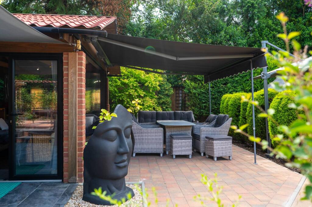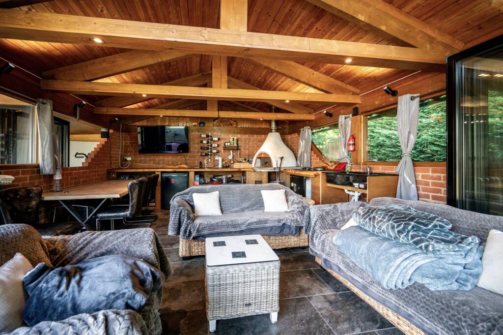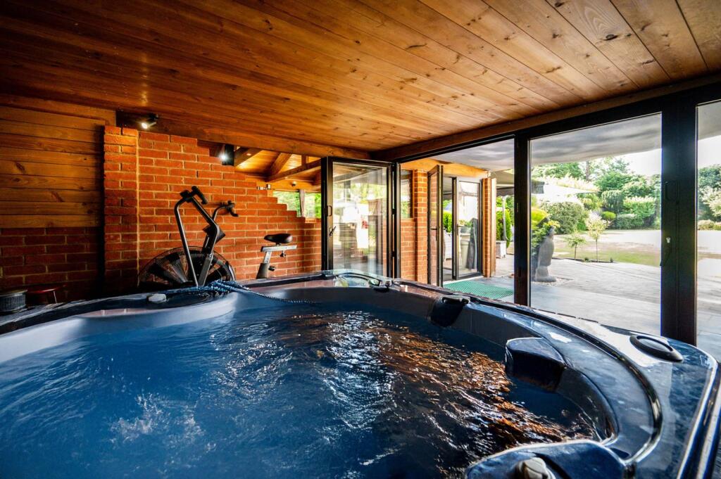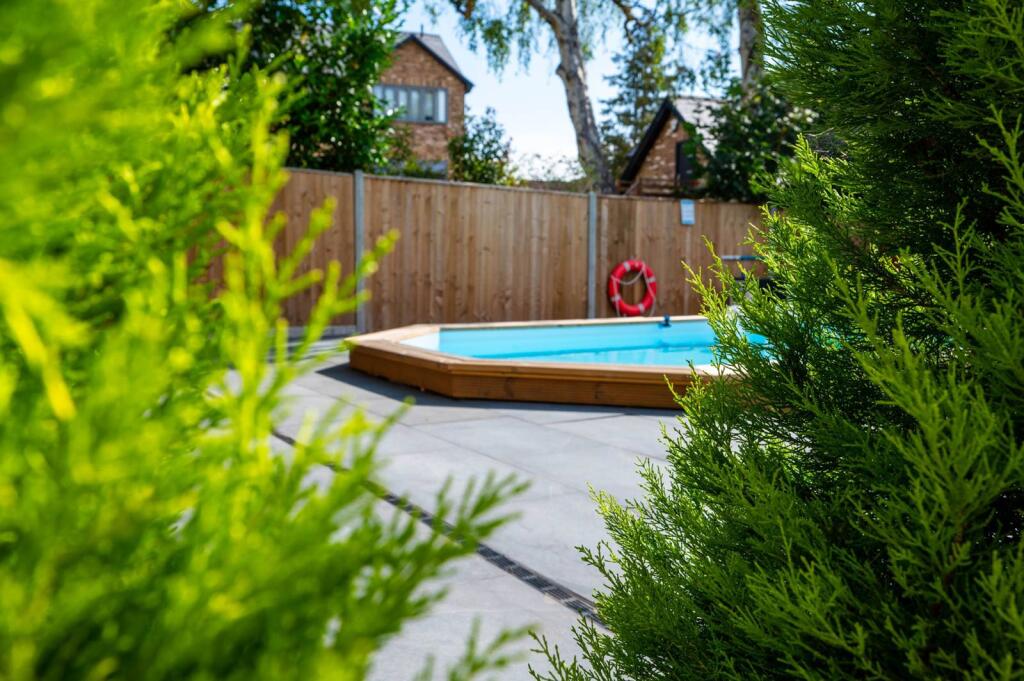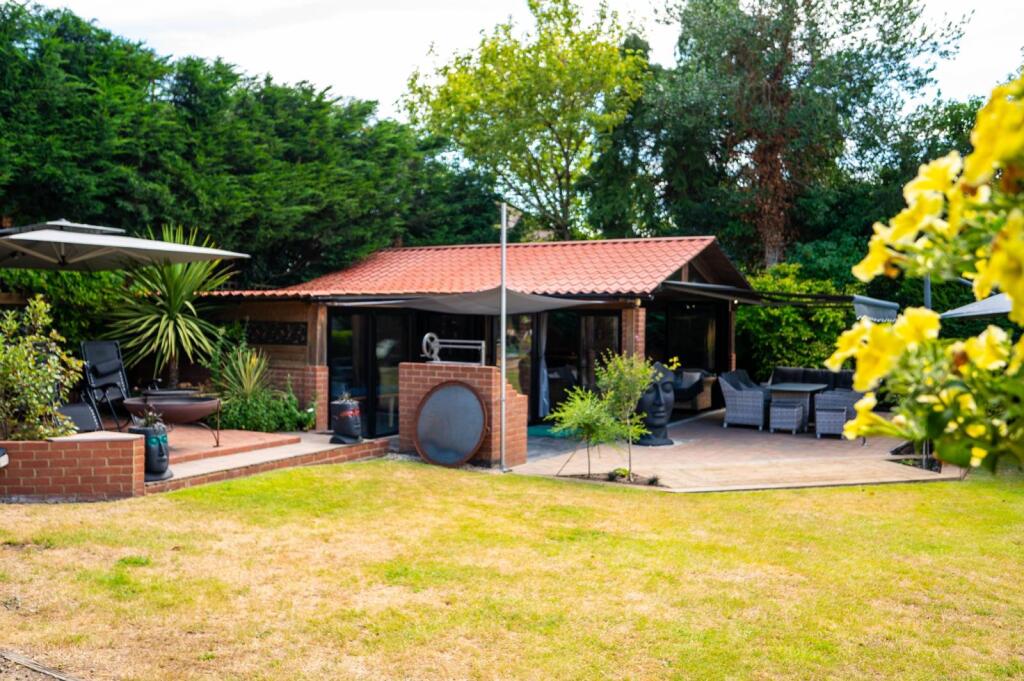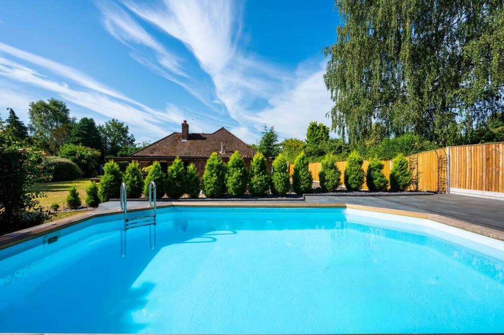 A spacious 3 bedroom bungalow featuring an incredible garden with swimming pool, outbuilding with kitchen and pizza oven, hot tub, sauna, vegetable patch and mature plants and trees.