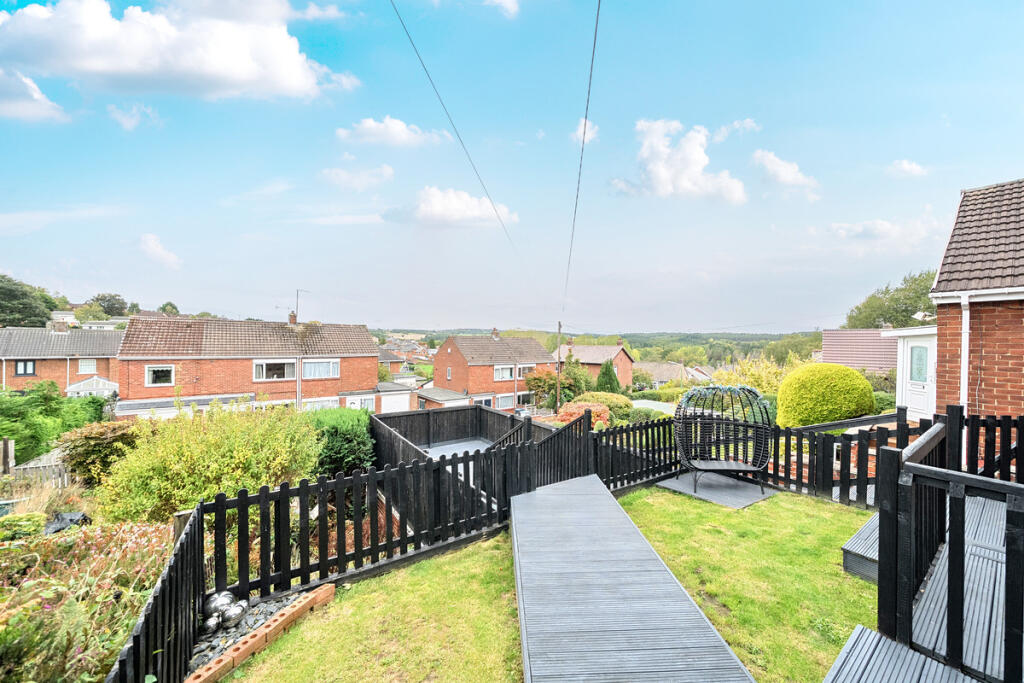 This is a two-bedroom semi-detached bungalow in Benfieldside, Consett. The property is well-located, close to local schools and transport links. The interior is modern and well-maintained, with a fitted kitchen and bathroom. The property benefits from a garden with a decked area. The asking price of £140,000 appears reasonable, given the property’s size, condition, and location. The property is modern and doesn’t appear to need any immediate renovation.