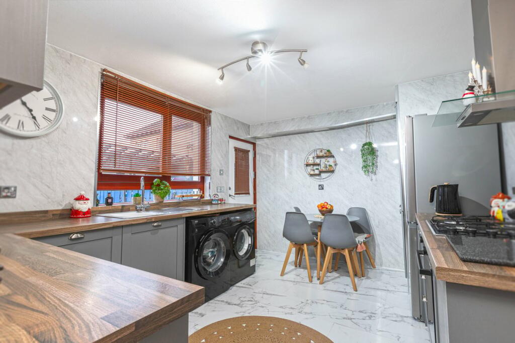 This three-bedroom terraced house in Kelty, Fife, presents a potentially attractive option for buyers. The property benefits from a recently modernised kitchen and bathroom, adding value and convenience. The interior decor shows a consistent style but may appeal more to specific tastes. The presence of three bedrooms provides ample living space. The location provides reasonable access to transport via ScotRail stations in nearby towns. However, information about nearby schools is missing which may be important to some buyers. Additionally, the size of the plot is not specified and the small paved back garden is somewhat limited. The asking price is comparable to similar properties in the area, suggesting it is competitively priced. Overall, the property appears to be a decent, comfortable family home in a reasonably convenient location, requiring minimal immediate maintenance or upgrades. A prospective buyer should consider the lack of detailed information and the overall preference for interior design.