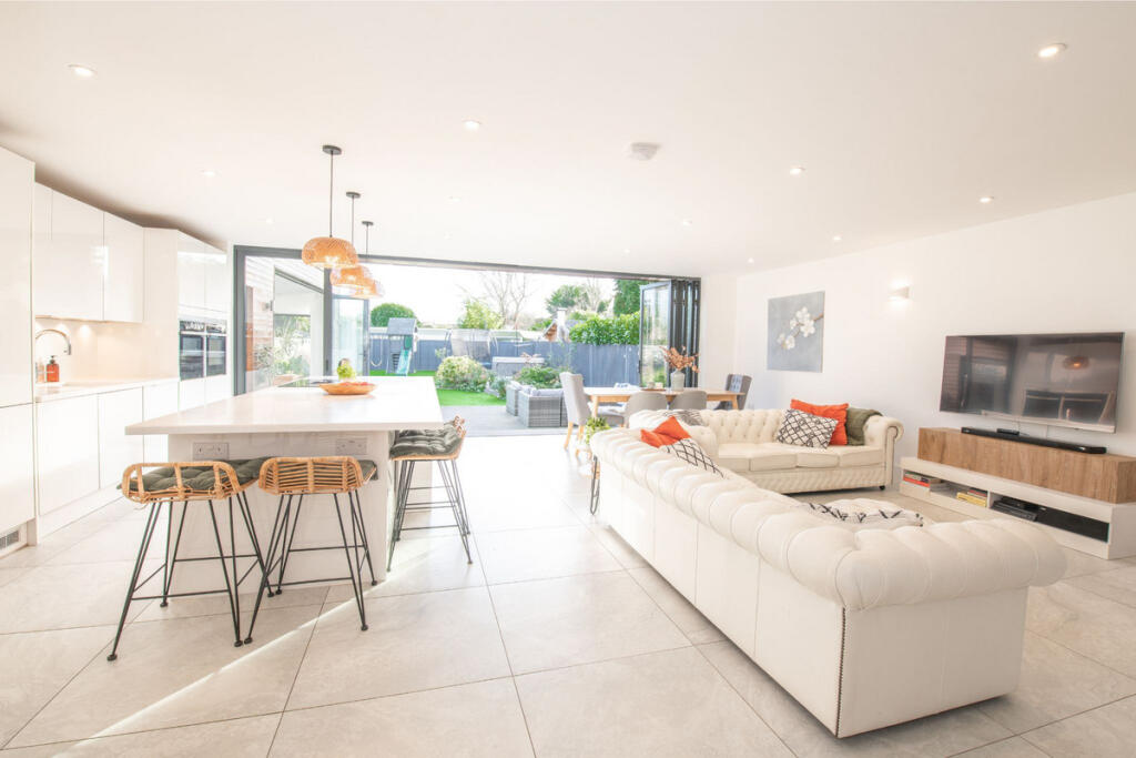 This contemporary, six-bedroom detached family home has been designed for effortless family living. The open-plan living areas and carefully considered features ensure a seamless flow between indoor and outdoor spaces for perfect entertaining