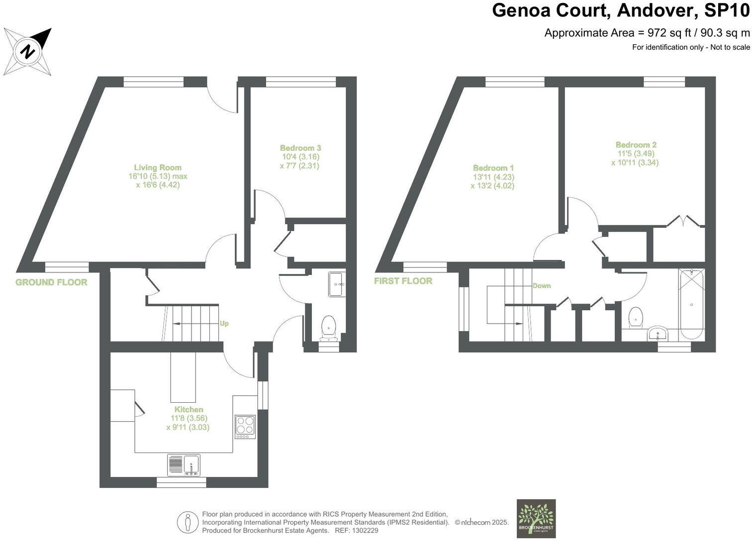 Located in Genoa Court, Andover, this three-bedroom home offers living space arranged across two floors.