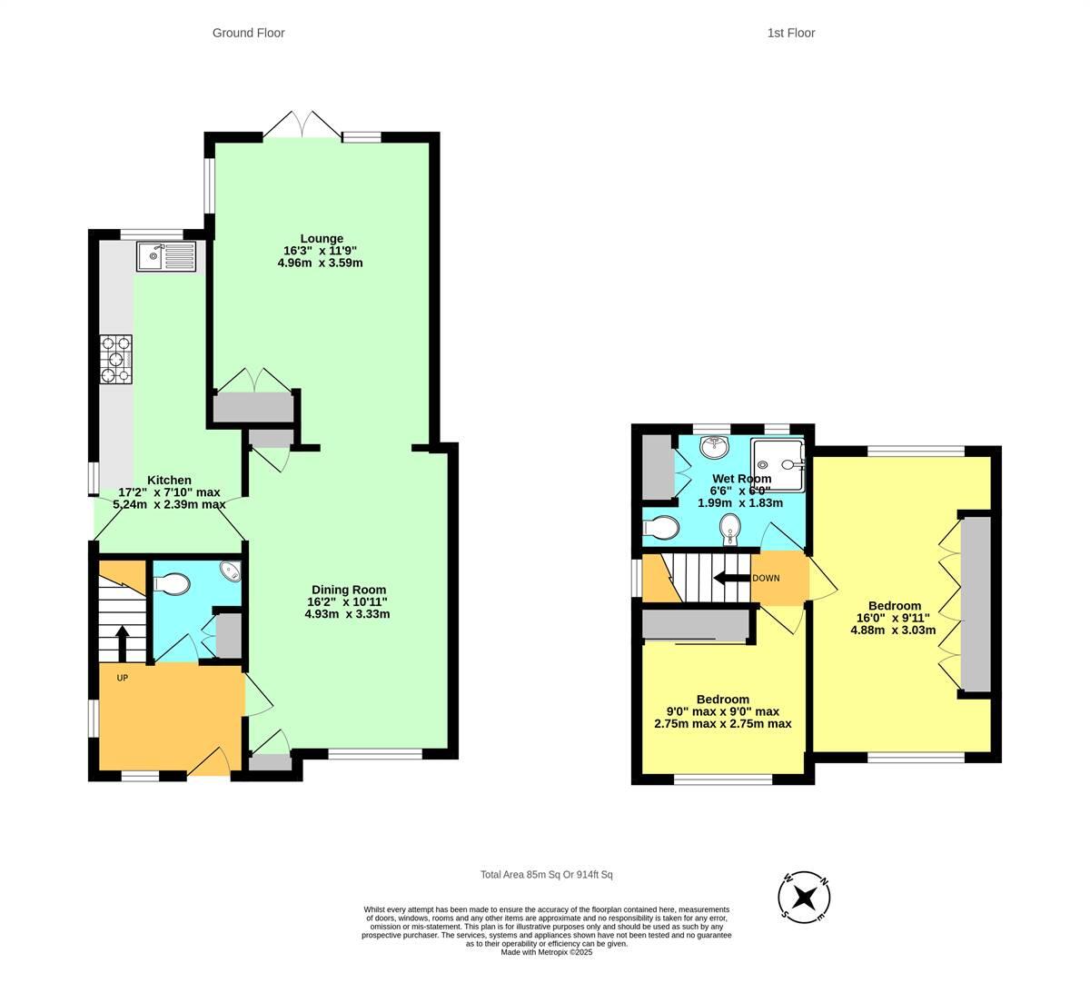This is a semi-detached property in Swalecliffe, Whitstable, featuring two bedrooms and one bathroom. The house offers 914.93 sqft of living space. It has a garden with a shed and greenhouse. The property is located near local amenities, schools, and transportation links, including the Chestfield and Swalecliffe train station. The interior appears to be in generally good condition, with a modern kitchen and bathroom. The EPC rating is C. The asking price is £339,950, which may be slightly above the average for the area based on square footage, but is in line with similar properties in the area.