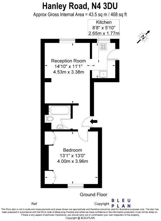 Well-proportioned one-bedroom flat on Hanley Road, Finsbury Park, featuring a separate kitchen, modern bathroom, gas central heating, and excellent transport links close to local shops, cafes, and green spaces.