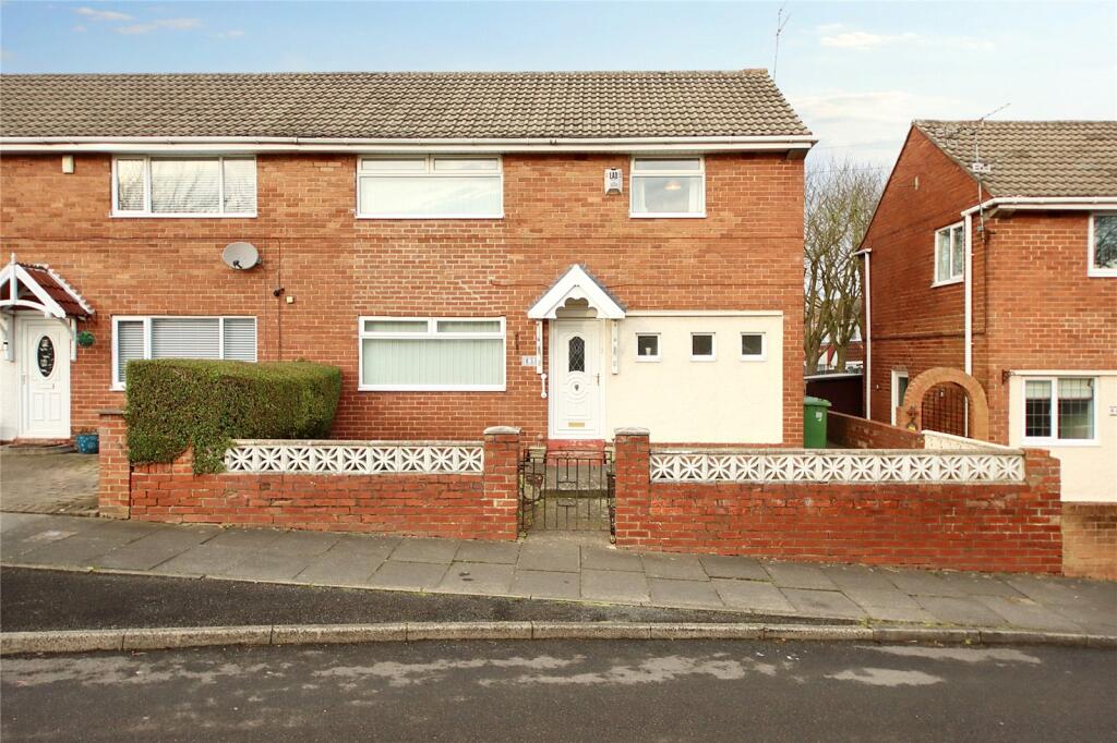 This three-bedroom semi-detached house in Gateshead, Tyne and Wear, is presented for sale at £120,000. The property boasts three bedrooms and a bathroom and is described as needing updating.