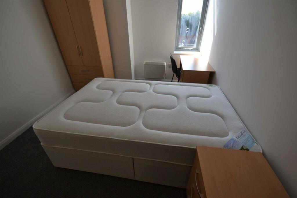 Large Prominent Town Centre Building Conversion. The room is a fully furnished double bedroom and is presented to a high standard throughout. Each Bedroom benefits from ensuite bedroom with three piece shower suite in white. Queen size bedroom Large Communal Kitchen / Diner / Living Areas - all c...