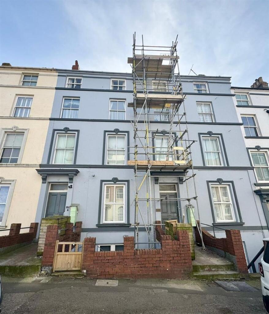 This property is a 2 bedroom apartment located in Scarborough, North Yorkshire. The apartment benefits from having sea views and a garden. The property is currently undergoing some renovations, as evidenced by the scaffolding visible in the exterior photos. While the interior appears well-maintained and modern, the exterior suggests ongoing work. The list price is below the average price for the area, and significantly below the average price per sqft. However, the lack of plot size information for comparable properties makes a definitive price comparison challenging. The location is good, with proximity to transportation and schools. The condition is fair, considering the ongoing exterior renovations. The presence of a garden is a positive attribute.