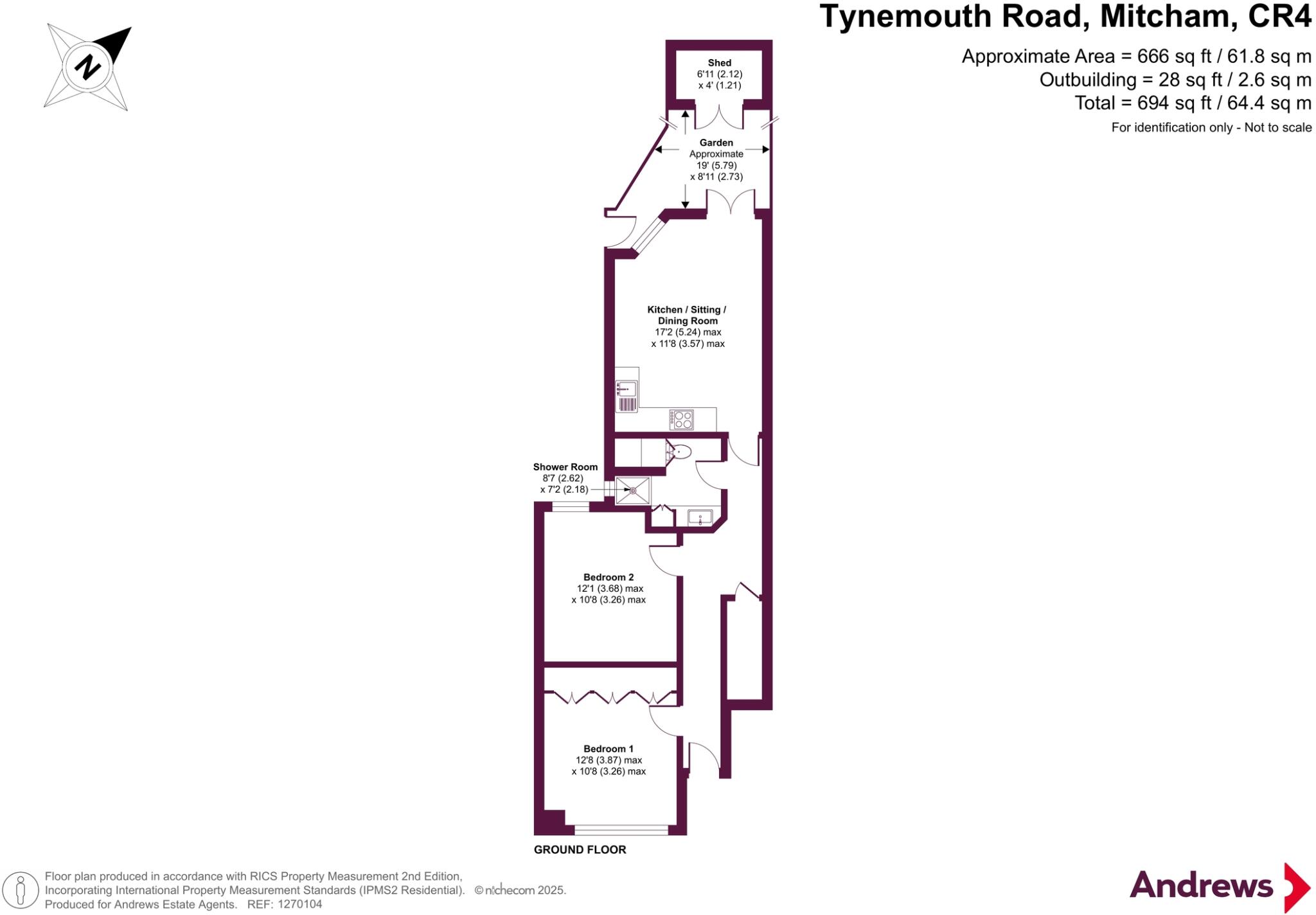 The property is a maisonette located on Tynemouth Road in Mitcham, CR4, a suburb of London.