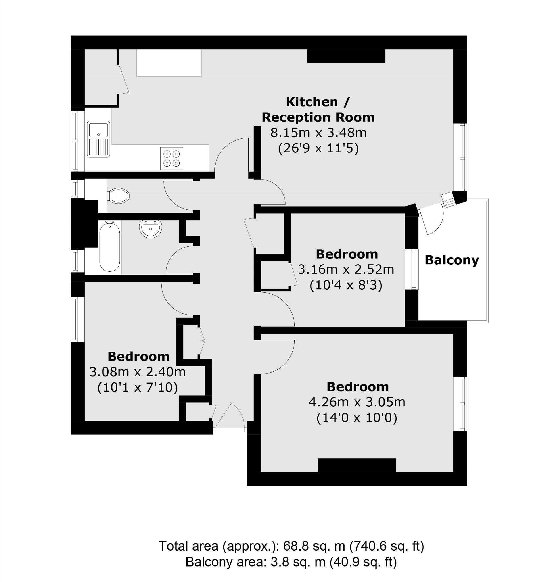 A three bedroom purpose built flat in a sought after E8 location. The property measures over 740 sq ft and benefits from plenty of storage, private balcony, wooden floors, open plan kitchen & living area, separate W/C and its proximity to shops, amenities and transport links.