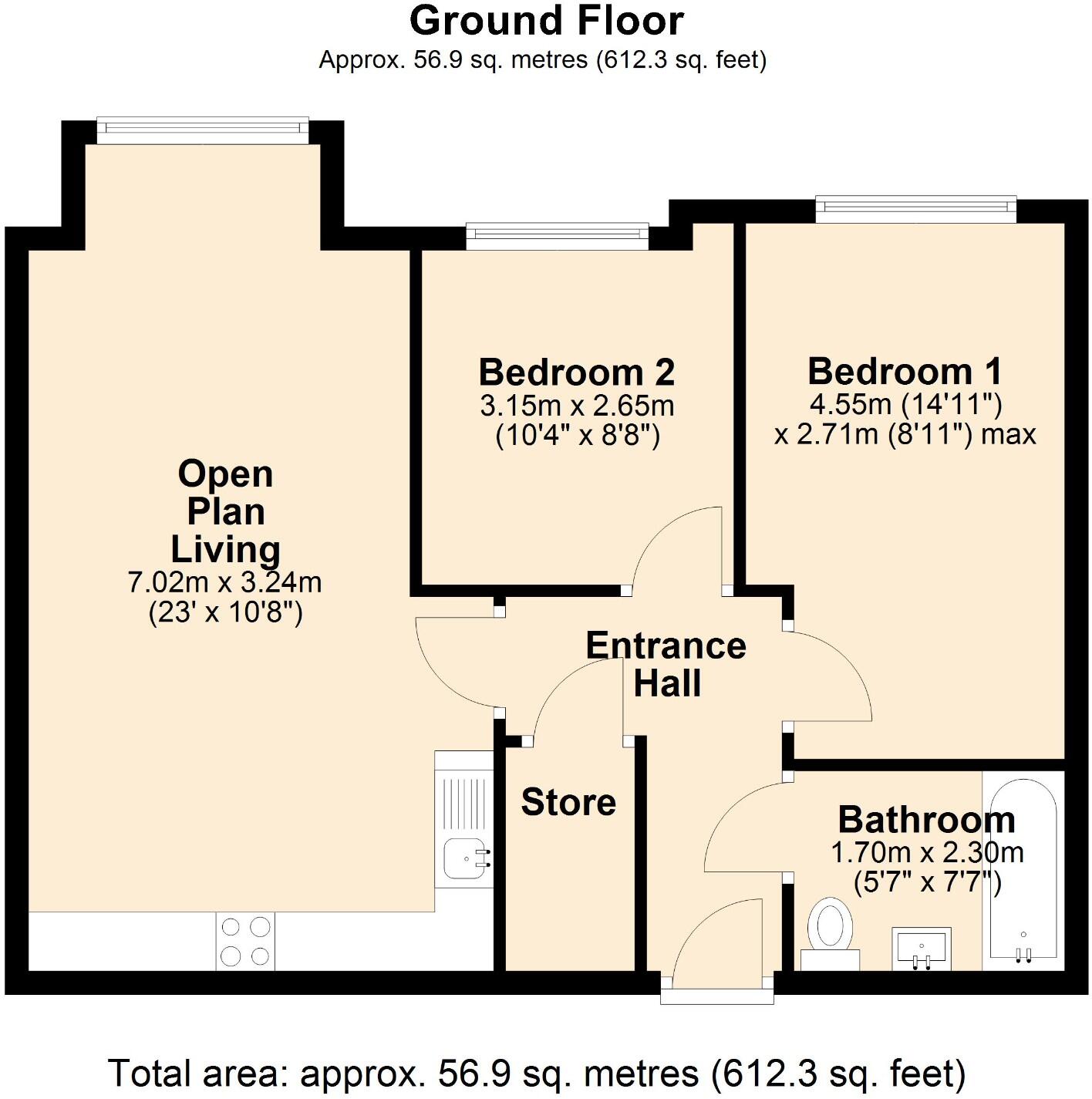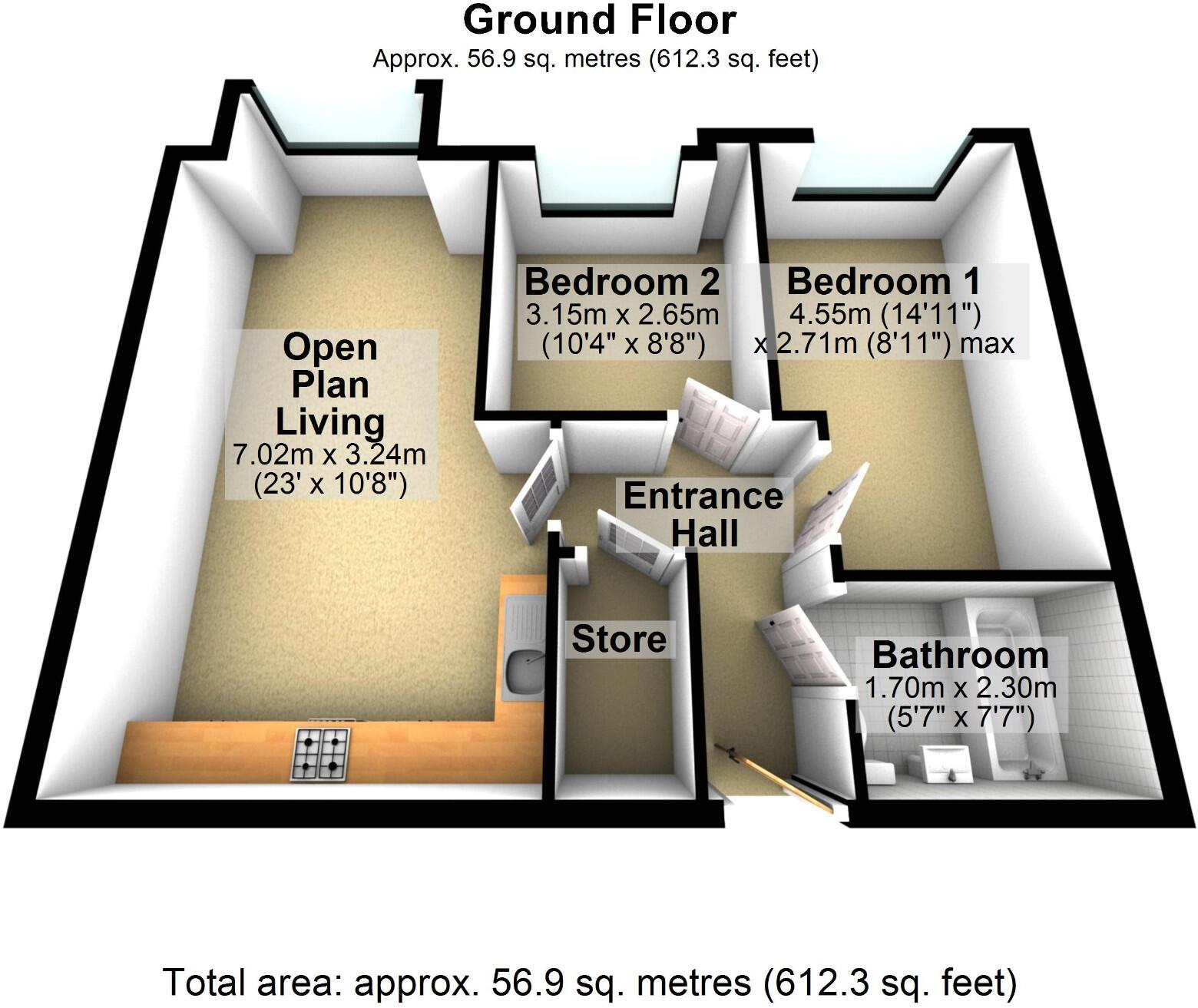 The plot size is small at 56.90 sqft, which is typical for an apartment and doesn’t include a private garden.