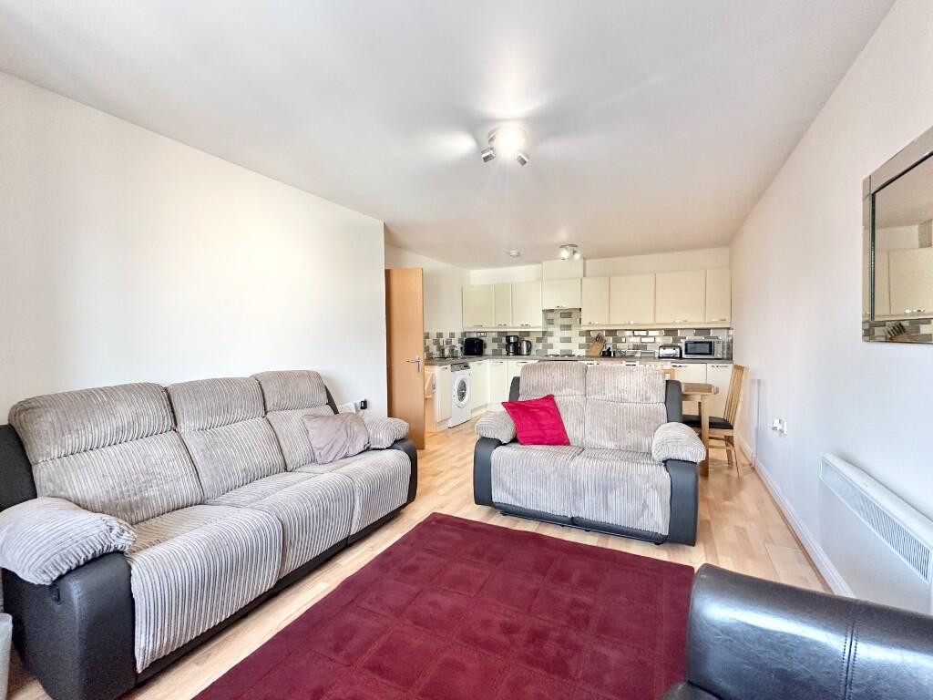 The property is a 2-bedroom apartment located in Stretford, Greater Manchester. The area benefits from relatively close proximity to several primary and secondary schools, with Ofsted ratings ranging from \‘Good\’ to \‘Outstanding\’. Transport links appear reasonable, with several train stations within a few kilometers, offering access to Trafford Park and Manchester city centre.