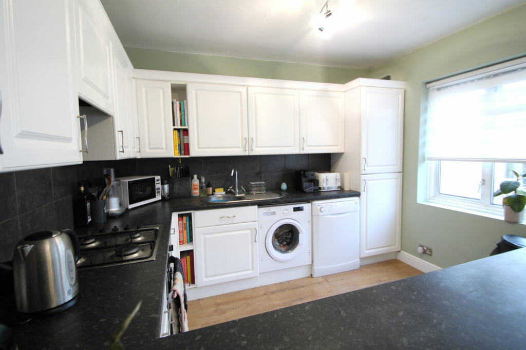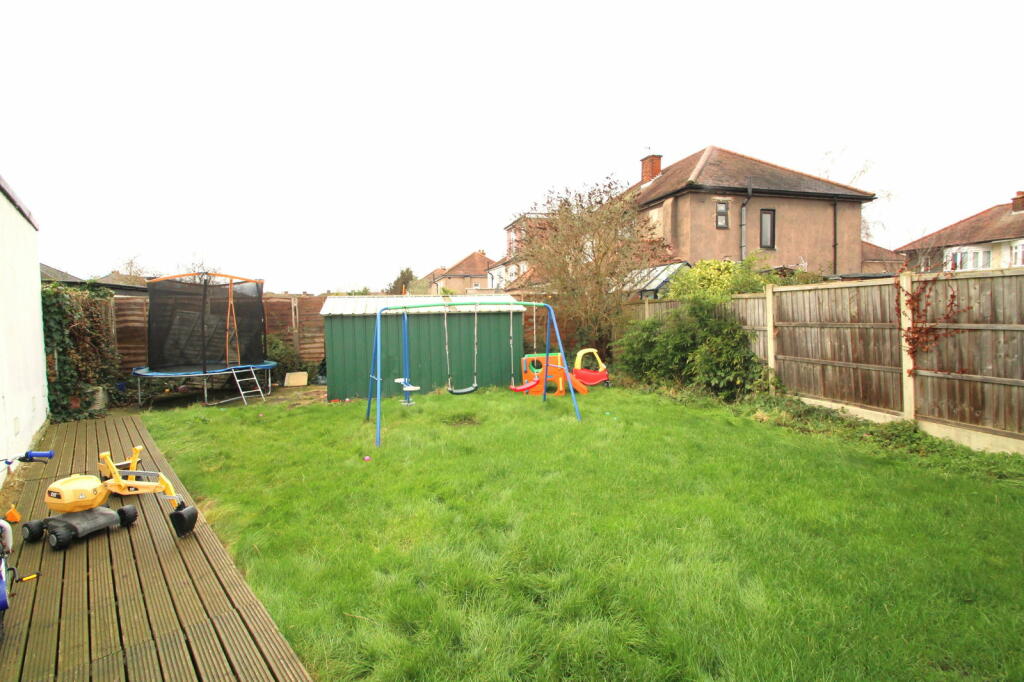 The interior photos reveal a property in reasonably good condition, though not extensively renovated. The décor and fixtures are pleasant and functional, suggesting that the property is well-maintained, although the general presentation is not luxurious, and no major features (e.g. extensions) are obvious. The kitchen and bathroom appear functional, and the bedrooms are modestly sized, typical of a property of this type in the location. The property also features a rear garden, including a deck and children’s play equipment, which adds to its family-friendliness and appeal.