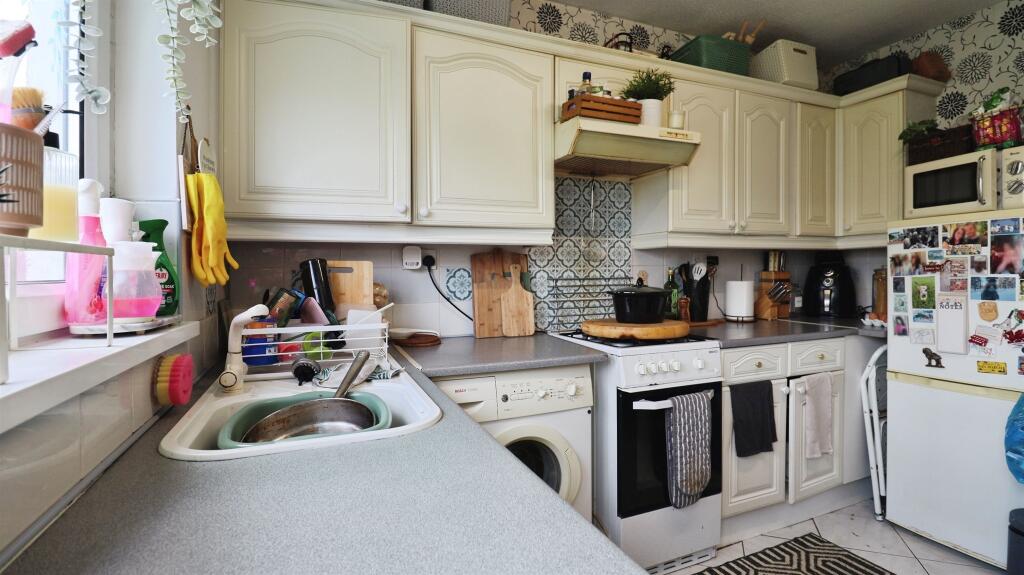 This is a two-bedroom semi-detached bungalow in Penarth, Vale of Glamorgan. The property requires renovation, particularly in the kitchen and bathroom. The garden is overgrown and needs landscaping. The property is located in a good area, close to schools and amenities. The list price is £350,000, which is below the average for the area, but this reflects the condition of the property. Potential buyers should factor in renovation costs.