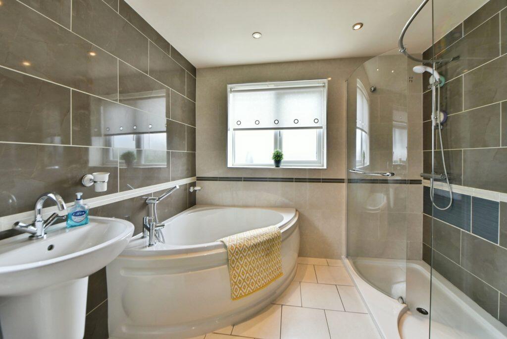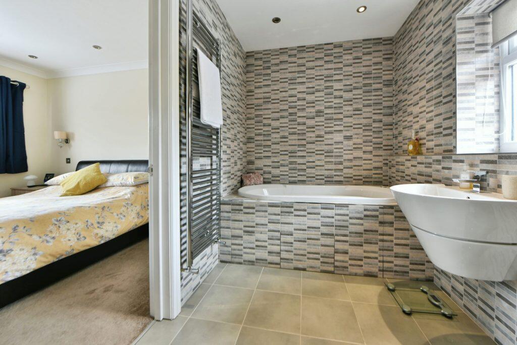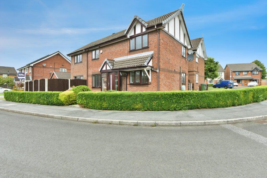 Detached 3-bed, 2-bath family home with driveway, garage, and garden. Spacious interiors with ensuite and dressing area to master bedroom. Located near schools, Metrolink, and M60. Leasehold, 965 years remaining.