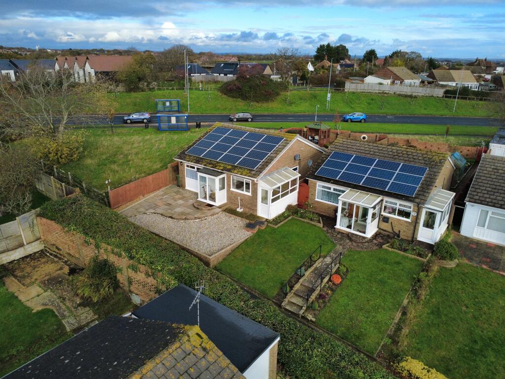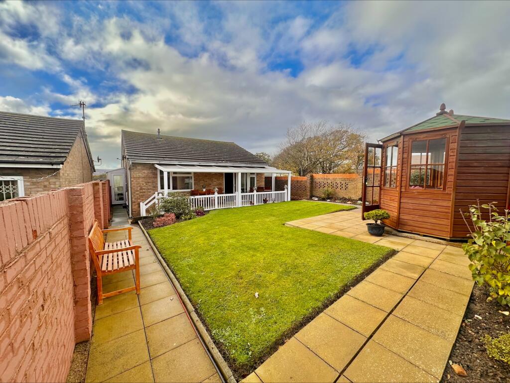 A well-presented two bedroom detached bungalow situated at the top of the hill, offering superb views, generous living space, a garage, and a beautifully maintained garden with decked seating area and summer house. Conveniently located close to shops and bus links.