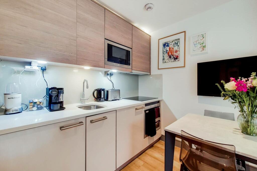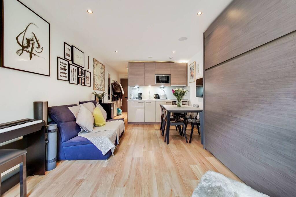 This studio apartment in Chelsea Creek, London, offers a modern and well-maintained living space. The property boasts a contemporary design with open-plan living, a well-equipped kitchen, and a private terrace, a significant advantage for a studio apartment in an urban setting. The location is a key selling point, with proximity to both the River Thames and green spaces such as Eel Brook Common, offering a pleasant balance of urban convenience and natural beauty. Excellent transport links, including Imperial Wharf Overground, and highly-rated schools nearby, add further value. However, potential buyers should consider the limited size and lack of substantial outdoor space that is typical for studio apartments in London. The price appears competitive for the area considering its condition and location, though more extensive comparison with similar studio properties in the immediate vicinity would be needed to establish if it represents exceptional value.