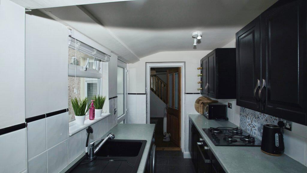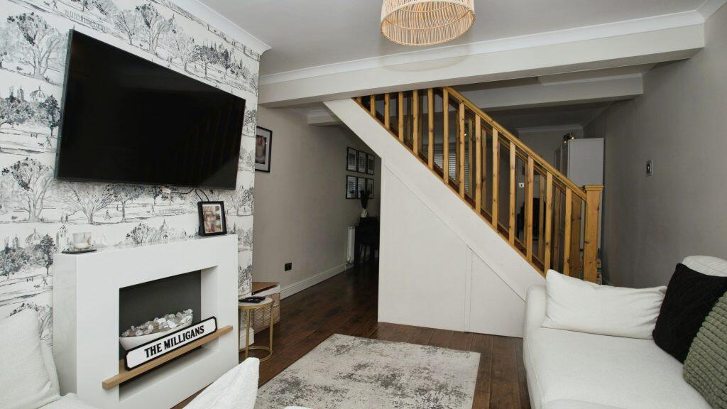 A well-presented three-bedroom end-terrace in Workington, offering modern living with two reception areas, stylish kitchen and bathroom, walk-in wardrobe, and an easy-care courtyard.