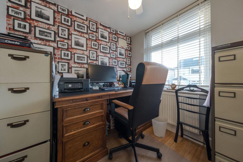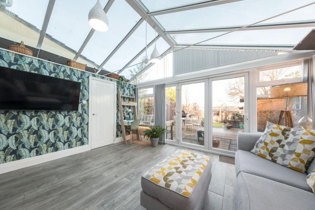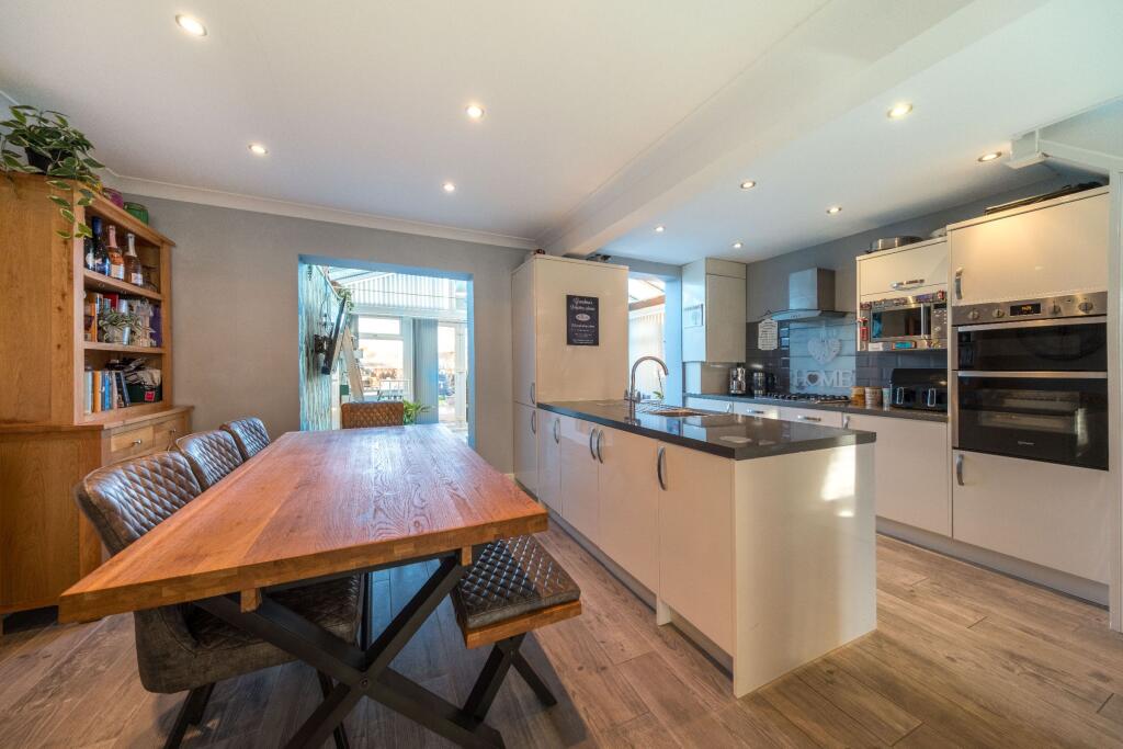 Immaculately presented and extended three-bedroom semi-detached family home. Featuring a stunning open-plan, light-filled ground floor, generous rear garden with garage, outbuilding and shed, two doubles and a single bedroom, plus driveway parking for two cars.
