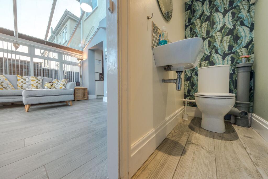 This is a three-bedroom semi-detached house in New Cheltenham, Bristol. The property features a modern kitchen and bathroom, a conservatory, and a good-sized garden with a shed. While generally well-maintained, some areas show signs of wear. The location offers convenient access to schools and transportation. The price appears reasonable compared to the local average.