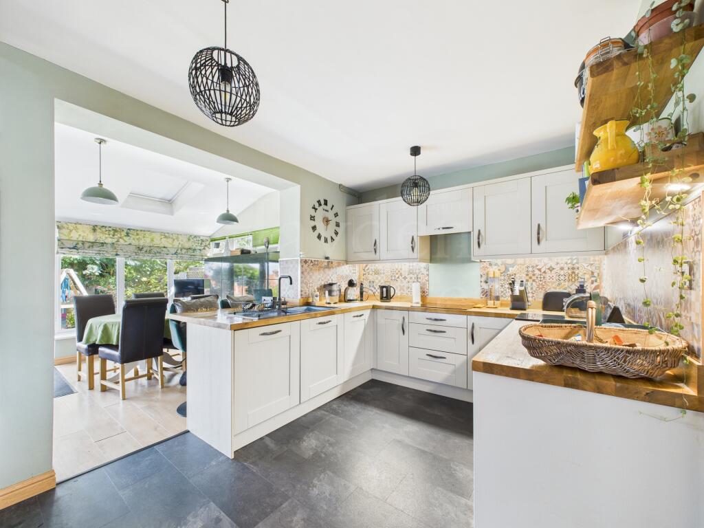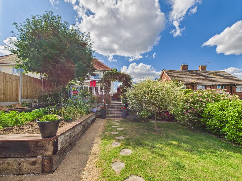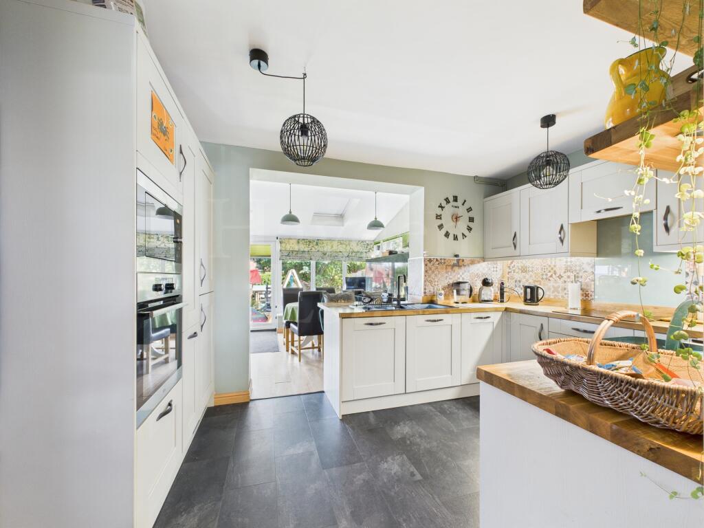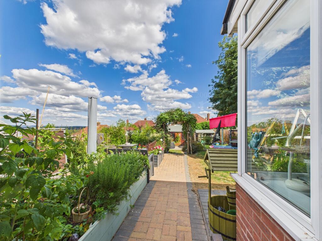 Well presented three-bed semi with refitted kitchen, stylish shower room, and sun room with warm roof. Landscaped rear garden with views, garden room, garage, and off-road parking. Loft is boarded with ladder. Close to amenities-stylish, spacious and ready to enjoy!
