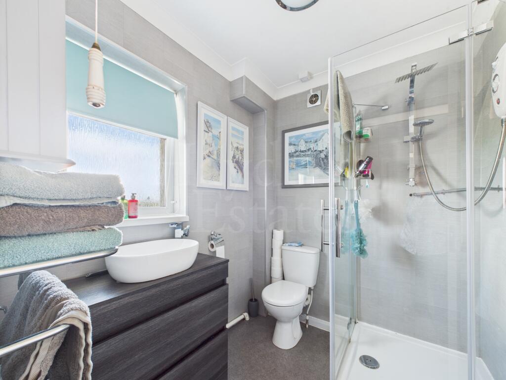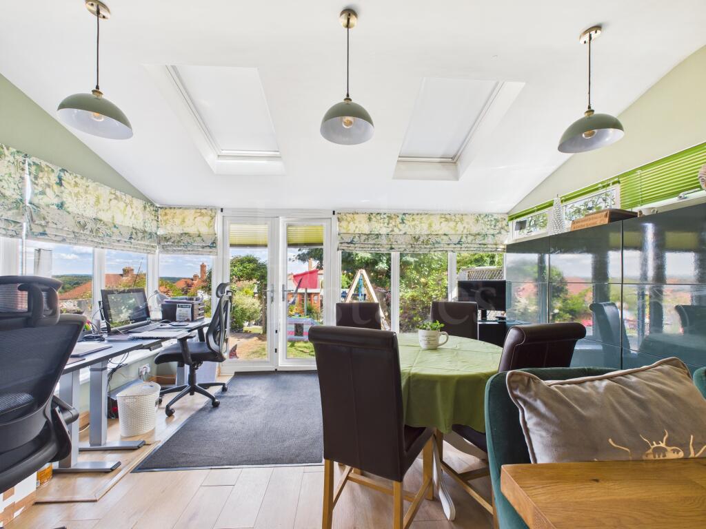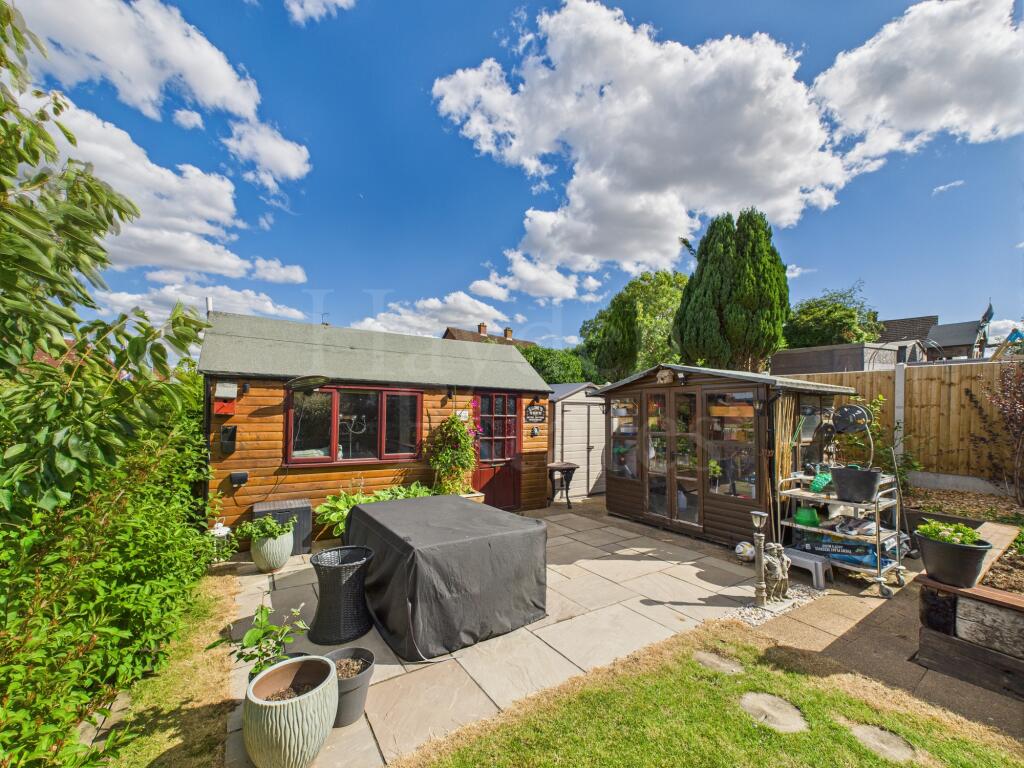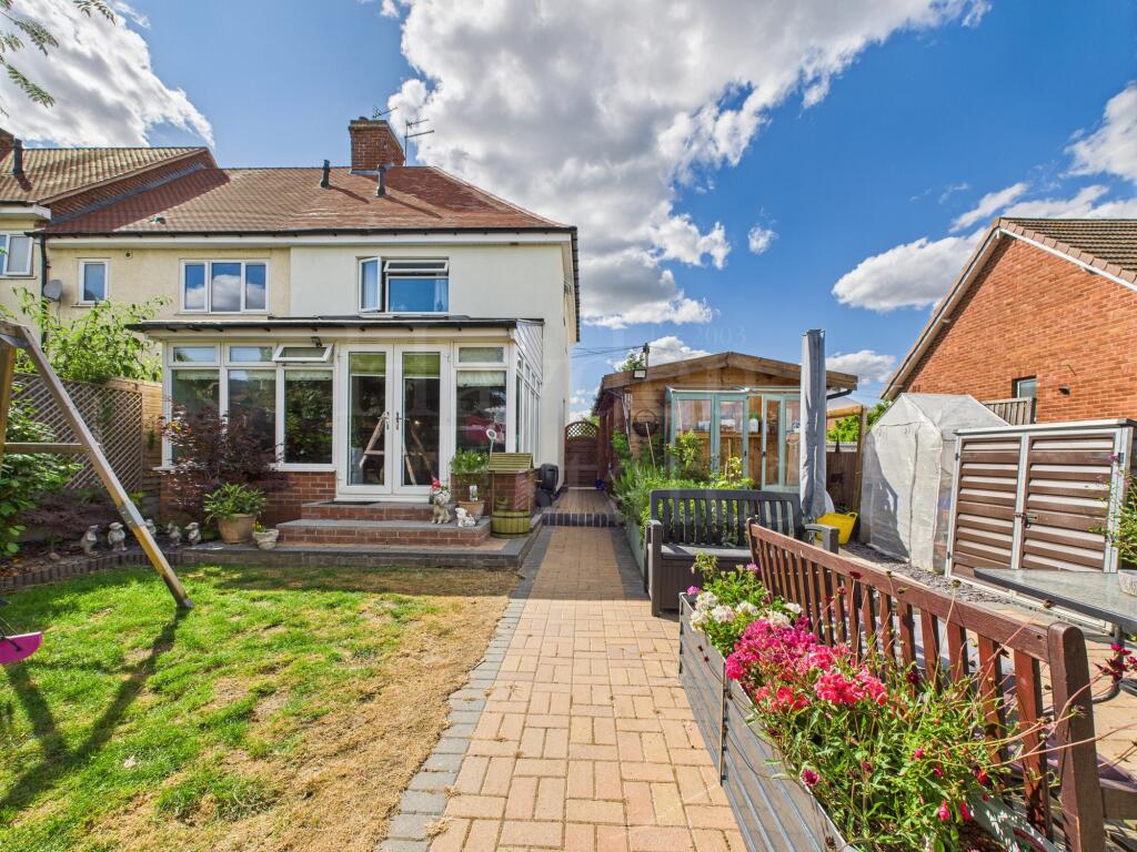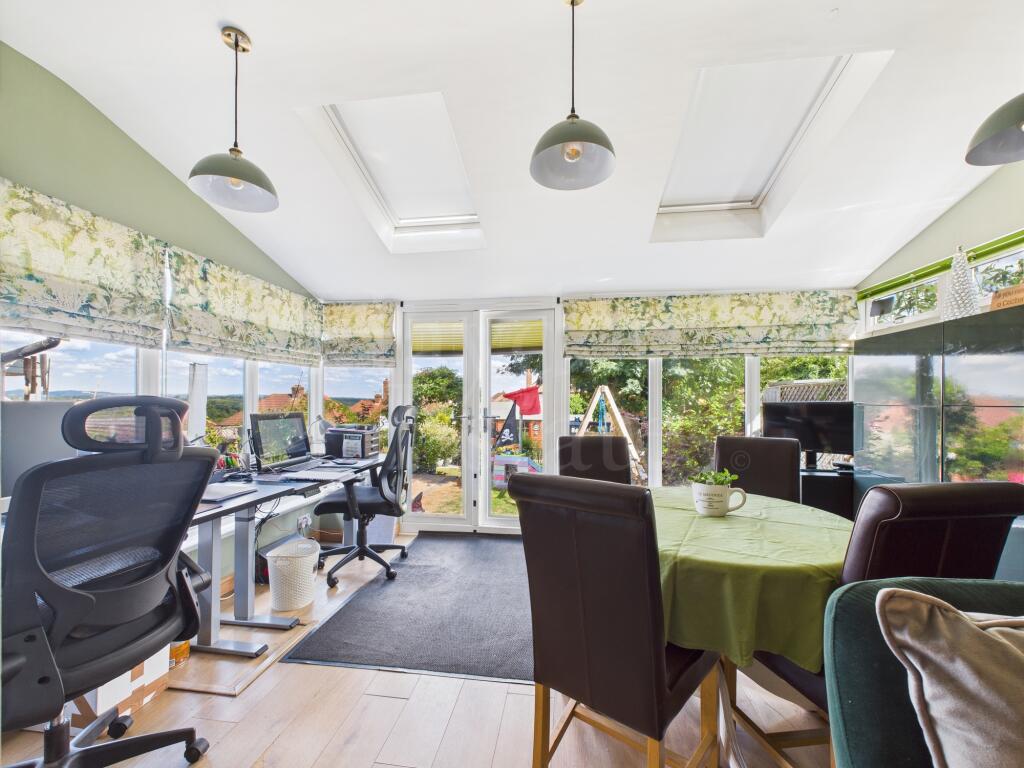 Well presented three-bed semi with refitted kitchen, stylish shower room, and sun room with warm roof. Landscaped rear garden with views, garden room, garage, and off-road parking. Loft is boarded with ladder. Close to amenities-stylish, spacious and ready to enjoy!
