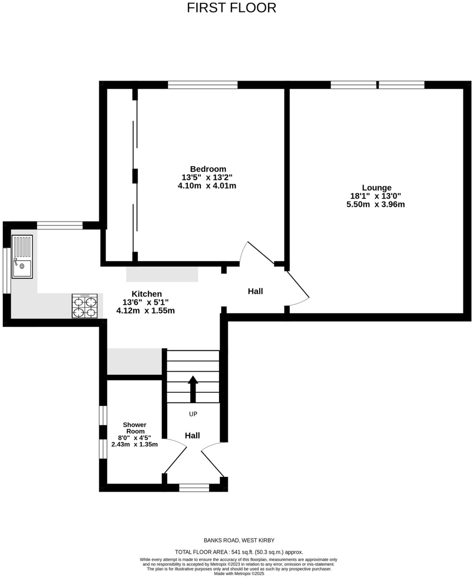 This is a one-bedroom apartment located on Banks Road in West Kirby. The property is in good condition, with a modern interior and a well-maintained bathroom and kitchen. It benefits from a garden and is situated in a desirable location close to transport links and schools. The asking price of £185,000 seems reasonable given the location, condition, and size of the apartment, although comparable properties nearby are listed at slightly lower prices. The apartment is approximately 516.99 sqft, and the average price per square foot in the area is £402.