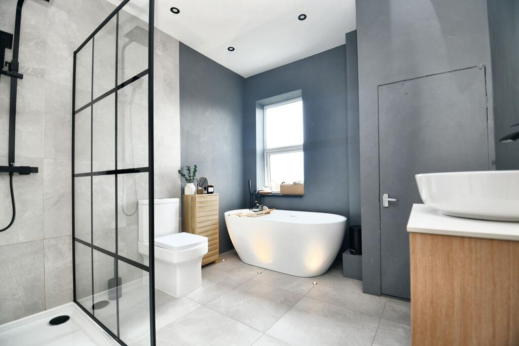 This is a two-bedroom terraced property located on Alexandra Road, Eccles, Salford. The property benefits from its proximity to local schools and transportation links, with Patricroft train station nearby. The property has a modern bathroom and kitchen, and a garden with both lawn and decked areas. While generally in good condition, some areas could benefit from cosmetic improvements. The asking price of £240,000 appears reasonable when compared to the average price per square foot in the area.