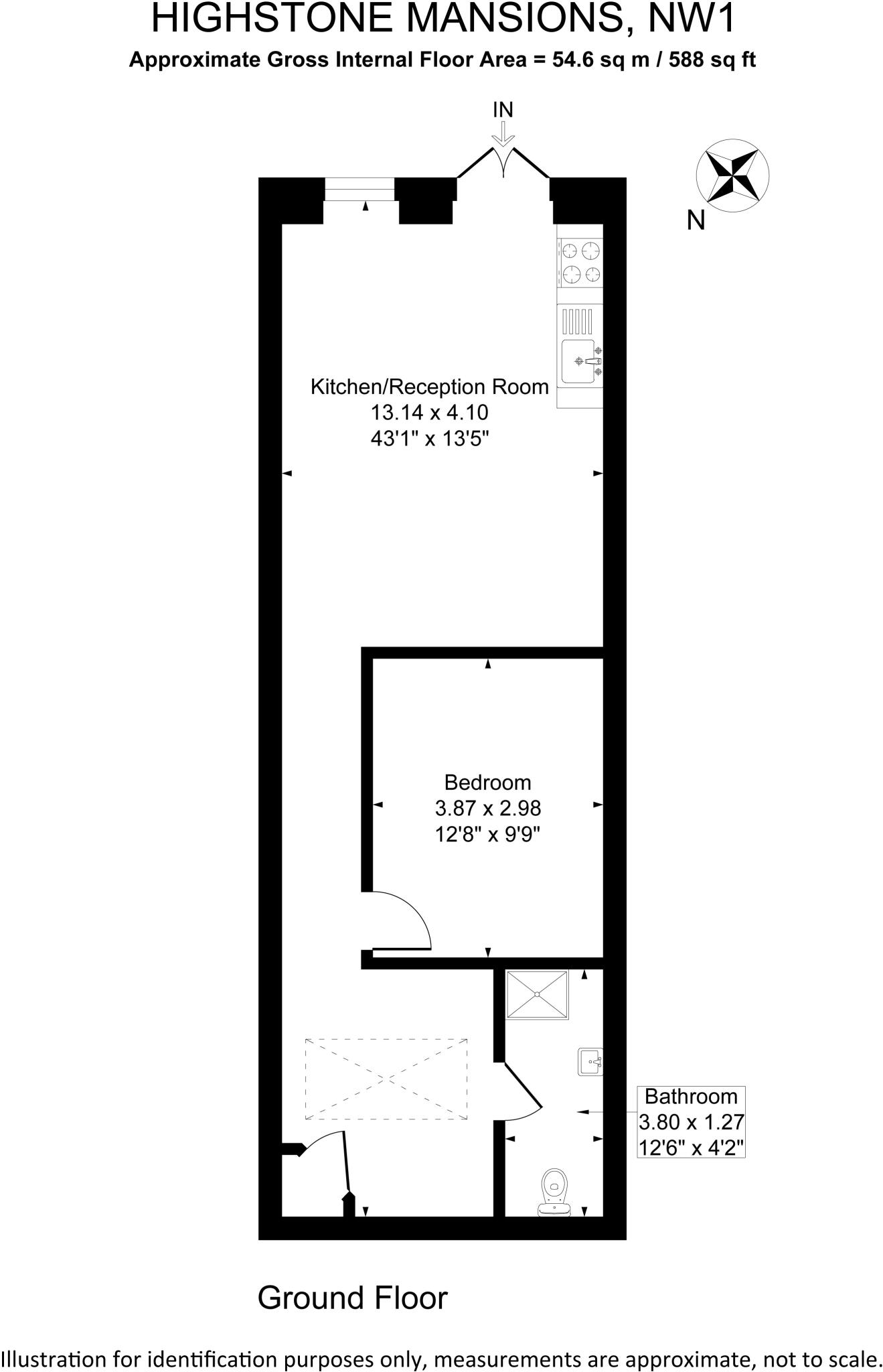 Alex Crown is pleased to present this spacious one-bedroom ground floor apartment located within the well-regarded Highstone Mansions on Camden Road, NW1. Offering approximately 588 sq ft (54.