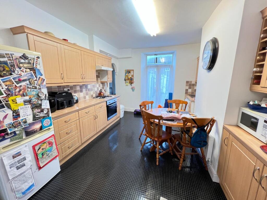 This is a three-bedroom terraced house in Bishop Auckland. The property is in a traditional style and appears to be in fair condition, with some aspects that could benefit from renovation. The kitchen and bathroom have modern elements. There is no garden. The property is located within a reasonable distance of local schools and the train station.
