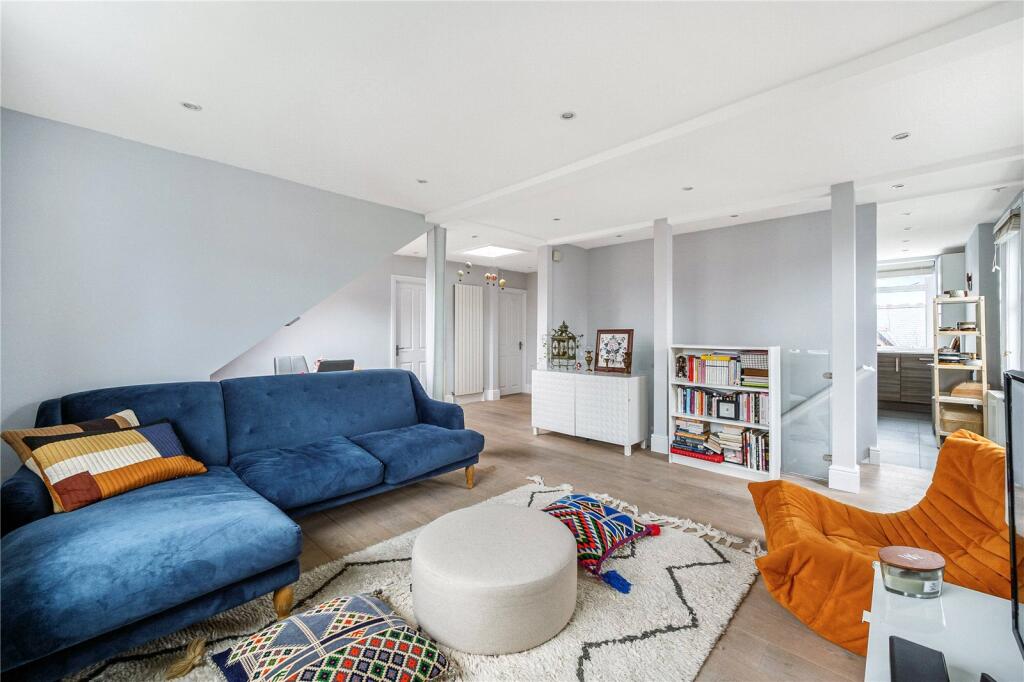 A beautifully appointed top floor apartment with three bedrooms, separate kitchen and large open plan reception room/dining area.