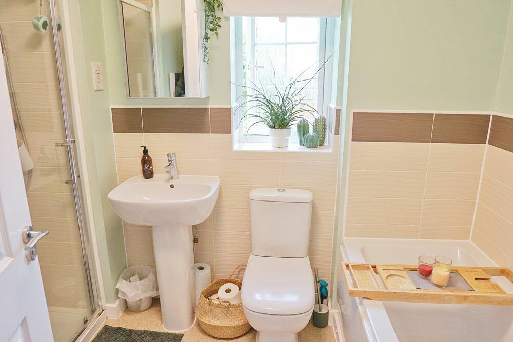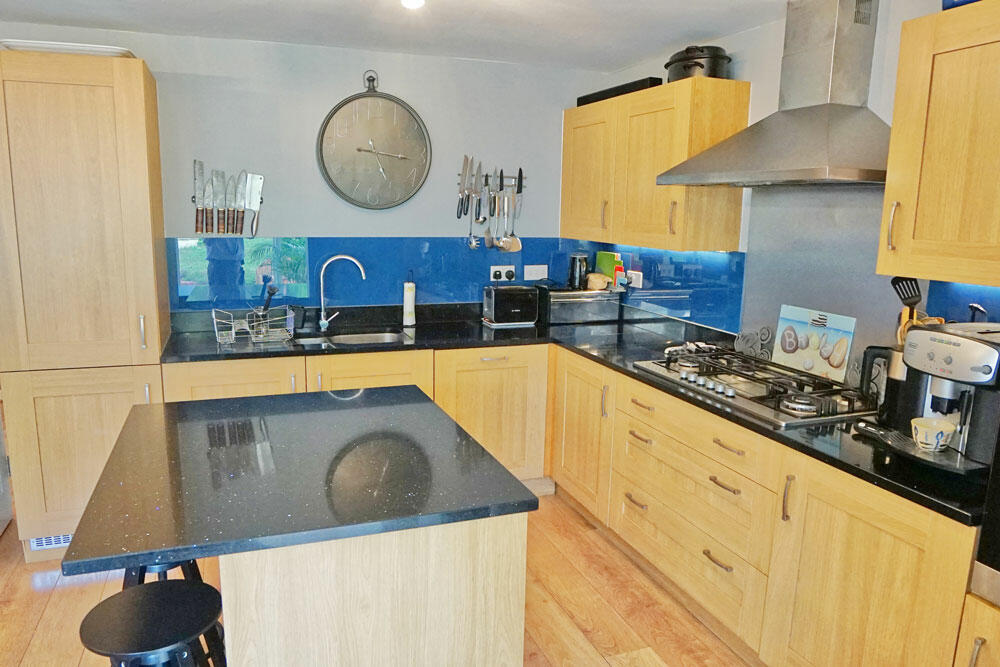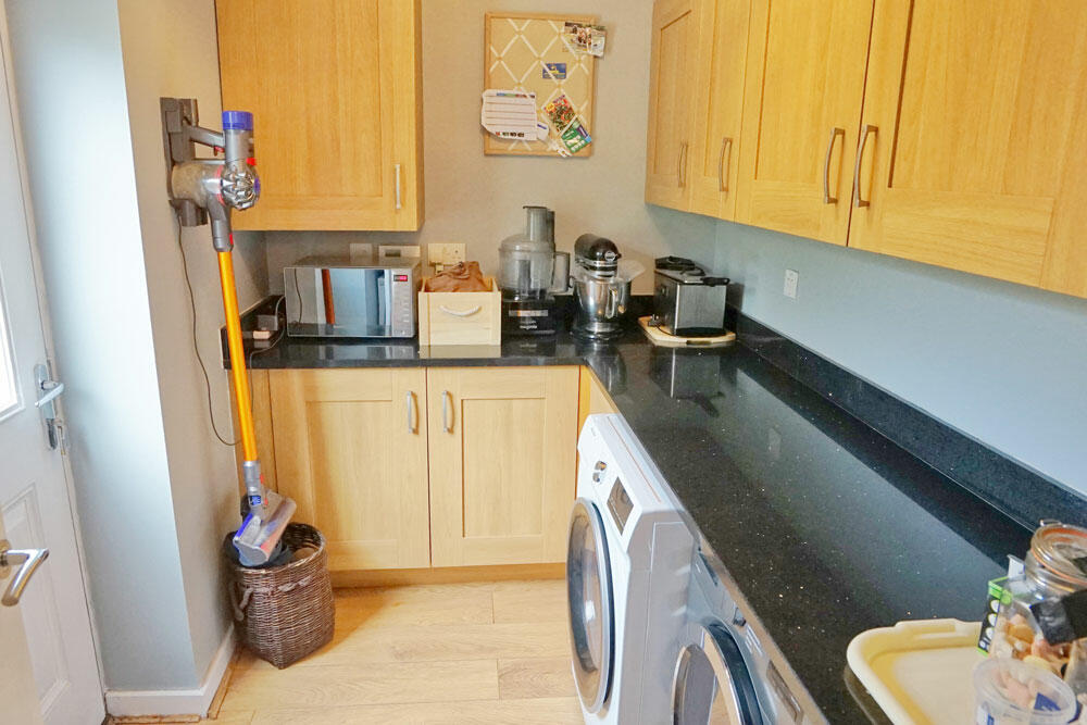 A nicely presented 4 bedroom detached family home which, having an integral garage, offers 4 double bedrooms, each with 2 double wardrobes, in the extra space above it. Downstairs is a superb open plan kitchen and dining room with a large utility room off of it as well as a decent living room at the